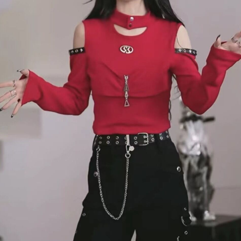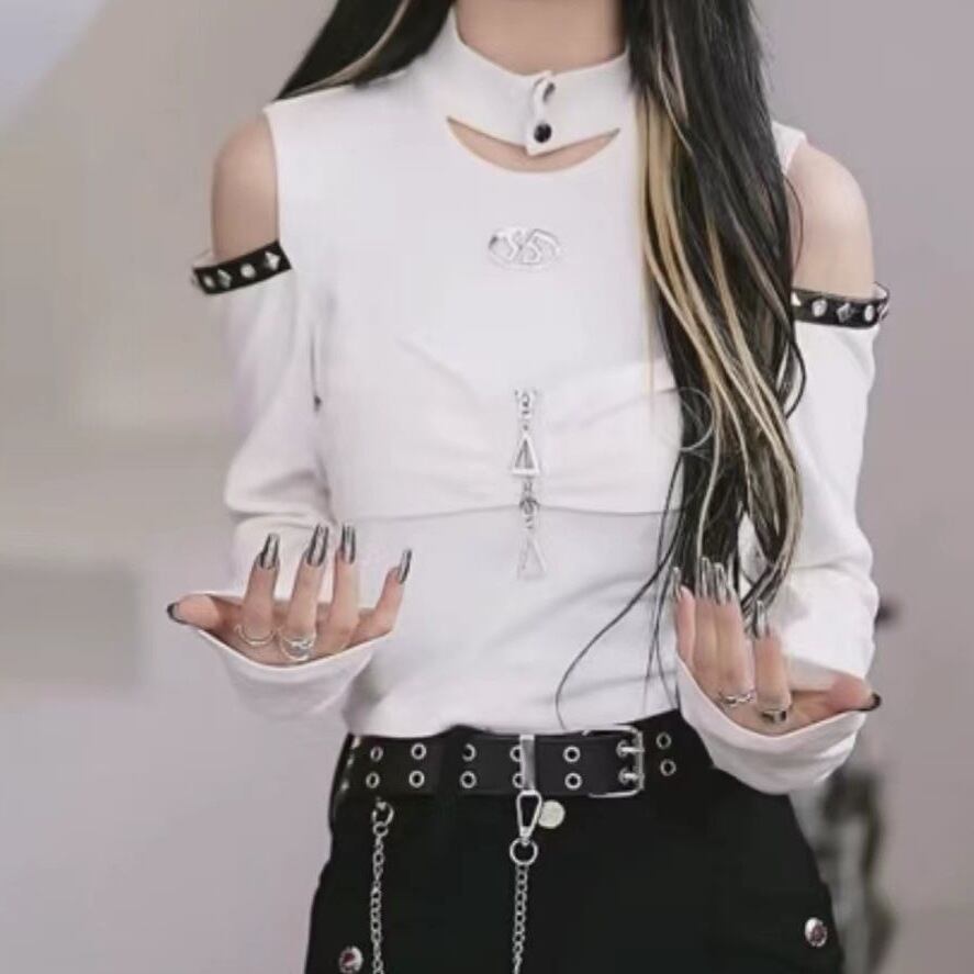 【大人気】Tシャツ 秋冬新作 ファッション ニッチ オフショルダー レター ボトミング シャツ レディース ジッパー デザイン ショート スウェットシャツのご案内です!このトレンディなオフショルダーTシャツは、秋冬のスタイリングに欠かせない必須アイテムです。