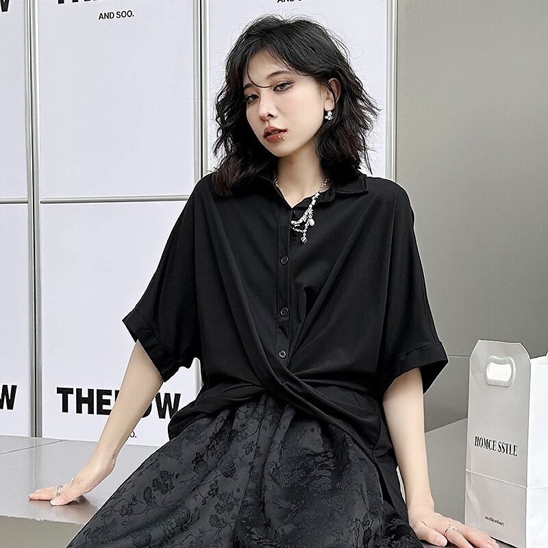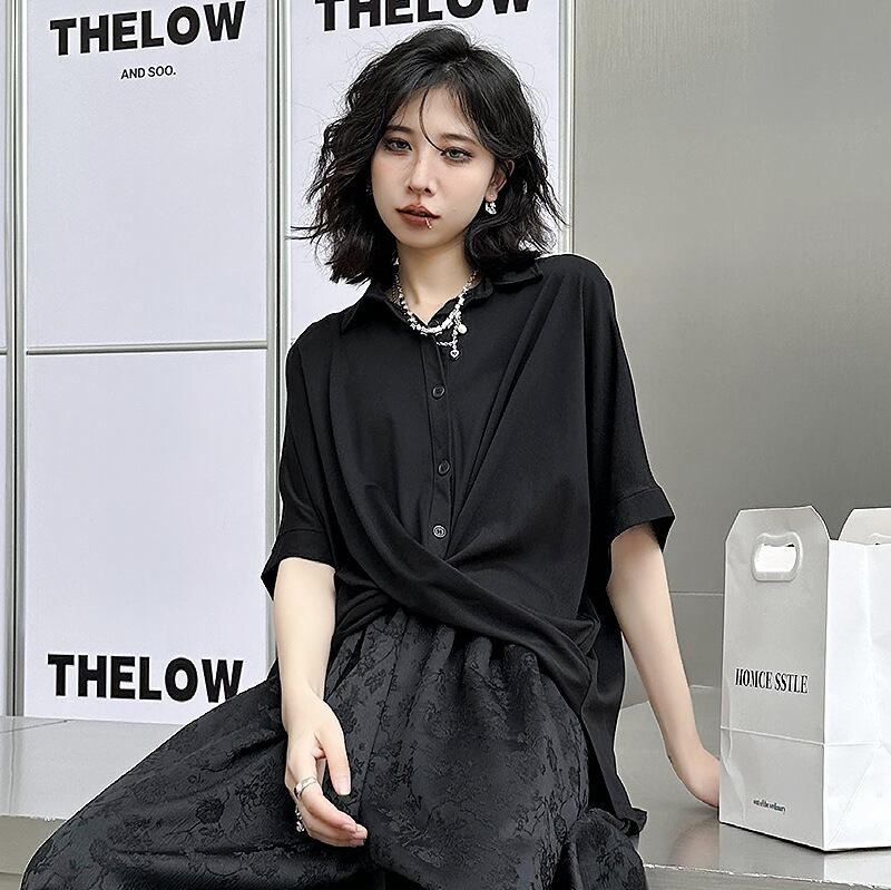 【大人気】香港風ダークスタイル 半袖Tシャツ レディース 夏新作 ゆったり ニッチデザインクロスイレギュラートップのご案内です!このトレンディな半袖Tシャツは、夏のスタイリングに欠かせない必須アイテムです。