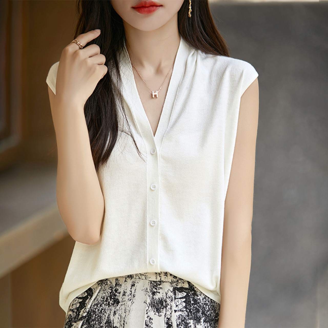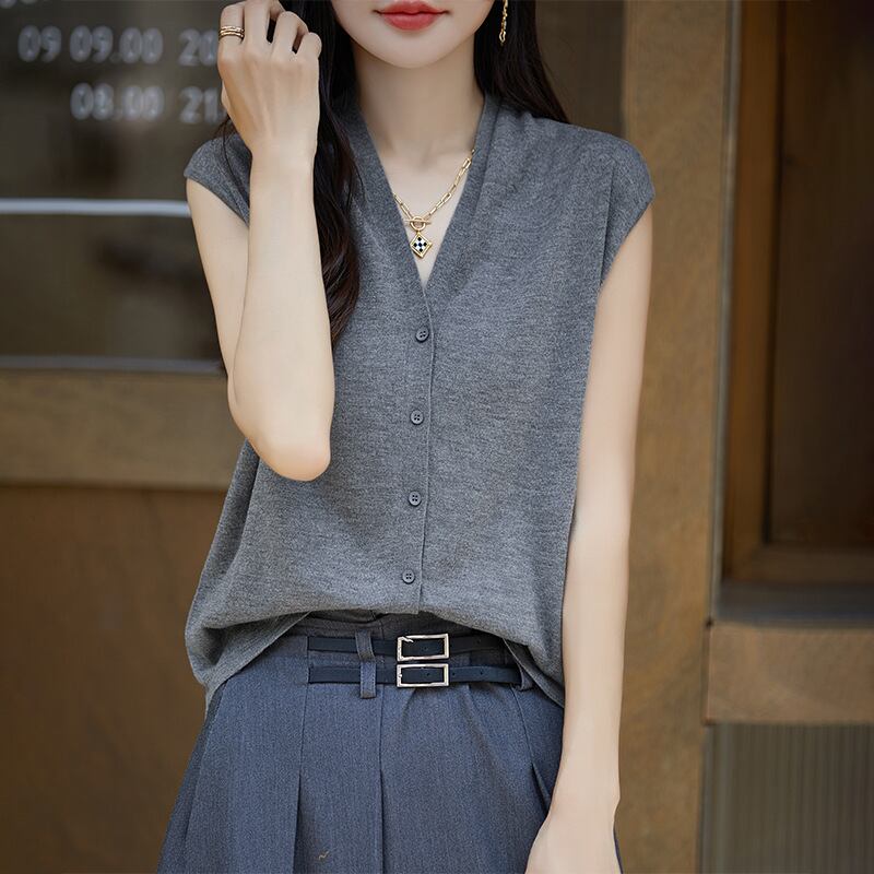 このVネックノースリーブカーディガンで、あなたのコーディネートに新たな魅力を加えて、おしゃれを存分に楽しんでください!多彩なシーンでの活躍をご期待ください!