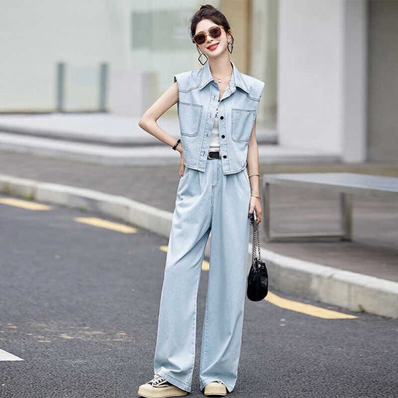 【大人気】ノースリーブ デニムスーツ レディース 夏の新作ファッションのご案内です!カジュアルでありながら洗練されたデザインが、夏のスタイルにぴったりなアイテムです。