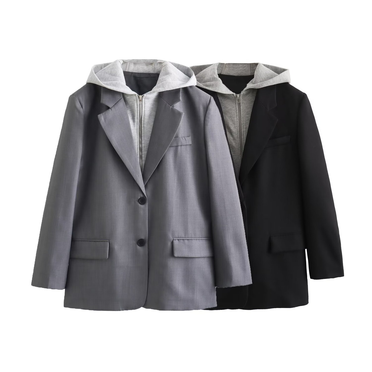 このクロスボーダーのフード付きスプリットスーツジャケットで、あなたのコーディネートに新たな魅力を加えて、おしゃれを存分に楽しんでください!多彩なシーンでの活躍をご期待ください!