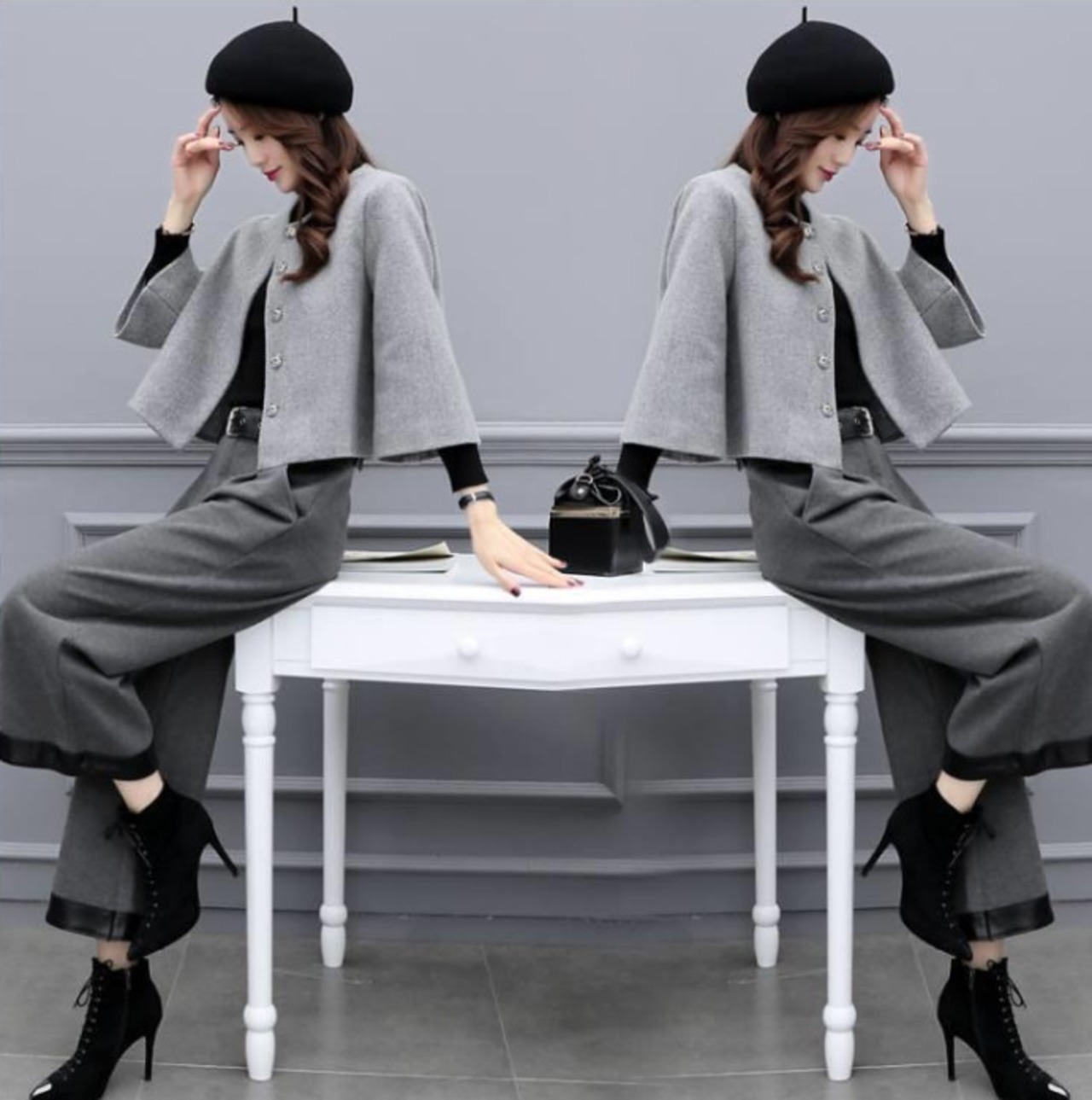 本商品は、暖かく柔らかなウール素材を使用しており、寒い季節でも快適に過ごせます!特にツーピースのデザインが特徴で、ショートコートとワイドレッグパンツの組み合わせがカジュアルながらも洗練された印象を与える一着に仕上がっています。このセットは、デイリーユースから特別な日のお出かけまで、さまざまなシーンでの活躍が期待できるアイテムです。
