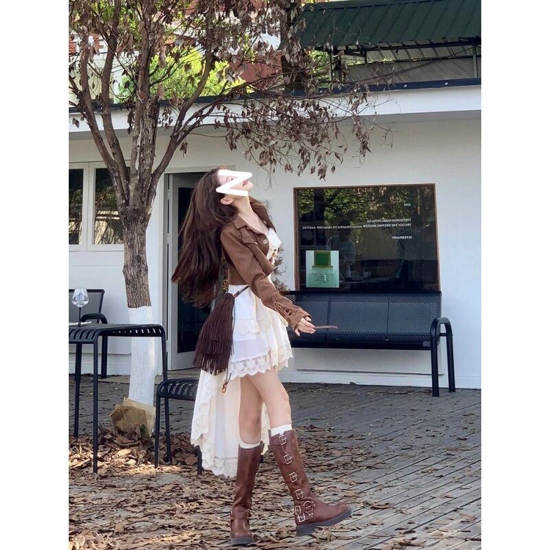 本商品は、ユニークな不規則なレースとサスペンダーデザインを取り入れたスカートで、レトロなコーヒー色のジャケットと組み合わせることで、エレガンスとカジュアル感を両立させています!特にウエスタンスタイルのスーツスカートインは、スタイリッシュさと遊び心を感じさせる一着に仕上がっています。このデザインは、デイリーユースから特別なお出かけまで、幅広いシーンで活躍が期待できるアイテムです。