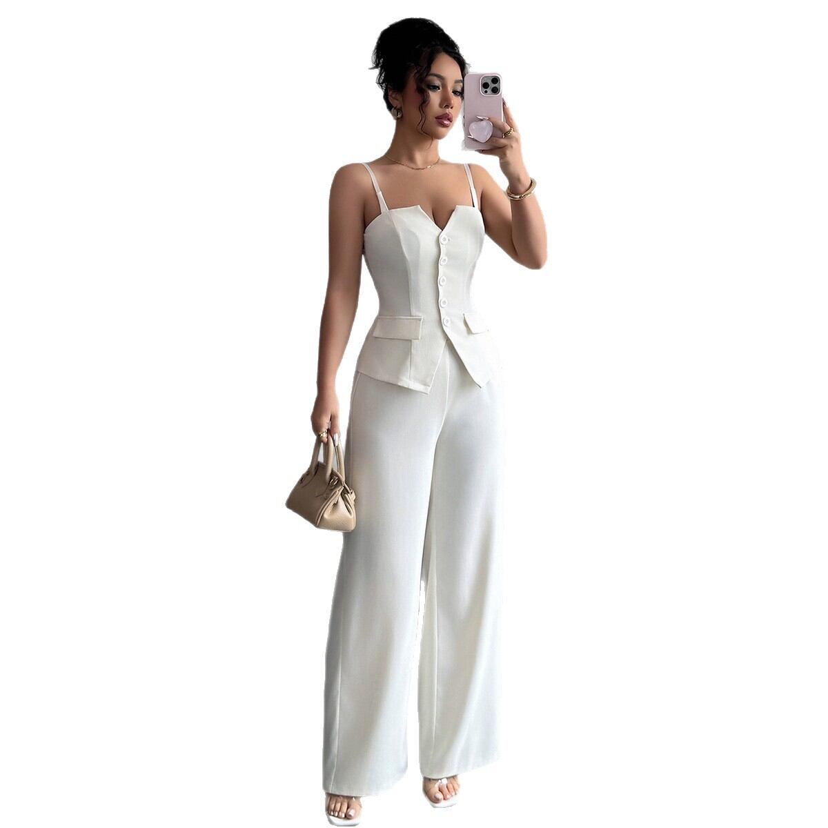 このおしゃれな国境を越えた欧米のサスペンダーベストワイドレッグパンツスーツで、あなたのコーディネートに素晴らしい魅力を加えて、おしゃれを存分に楽しんでください!多彩なシーンでの活躍をご期待ください!