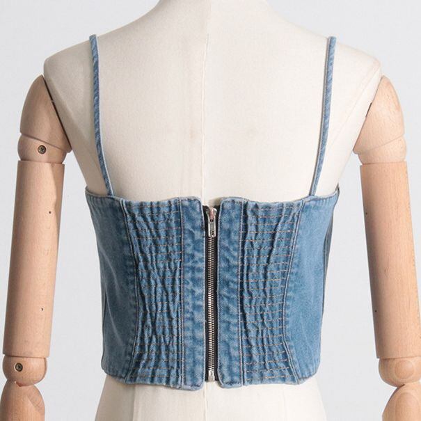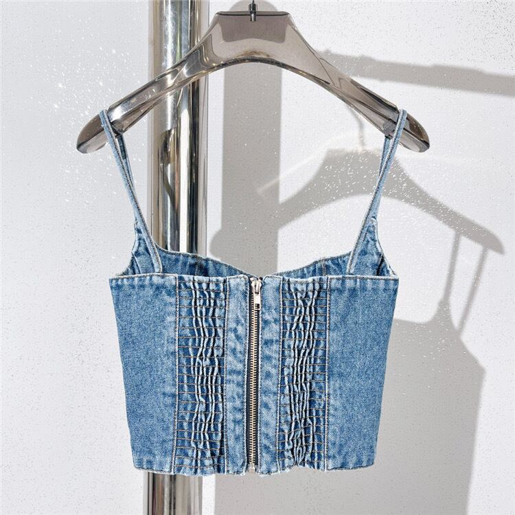 【大人気】ホットガールデニムチューブトップベスト、イタリアンスタイルのファッショナブルなリアジッパークロージャー、コルセットスタイルのデニムキャミソールベストのご案内です!洗練されたデザインと個性的なシルエットを兼ね備えた本商品は、様々なシーンで大活躍するおしゃれなアイテムです。