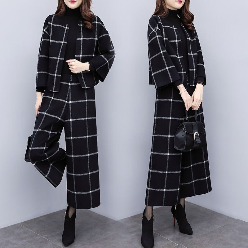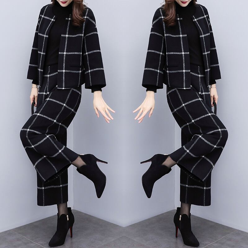 この新しい女性の秋と冬のツーピースのズボン、チェック柄ウールのショートコート、ワイドレッグパンツ、カジュアルファッションスーツは、スタイルに洗練を加えるための必須アイテムです。このアイテムを取り入れて、あなたのコーディネートを一層引き立ててみてはいかがでしょうか?