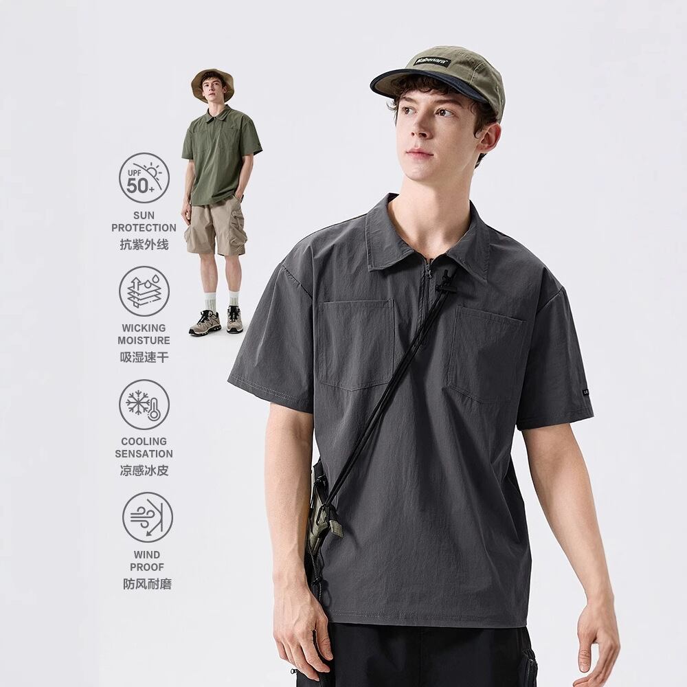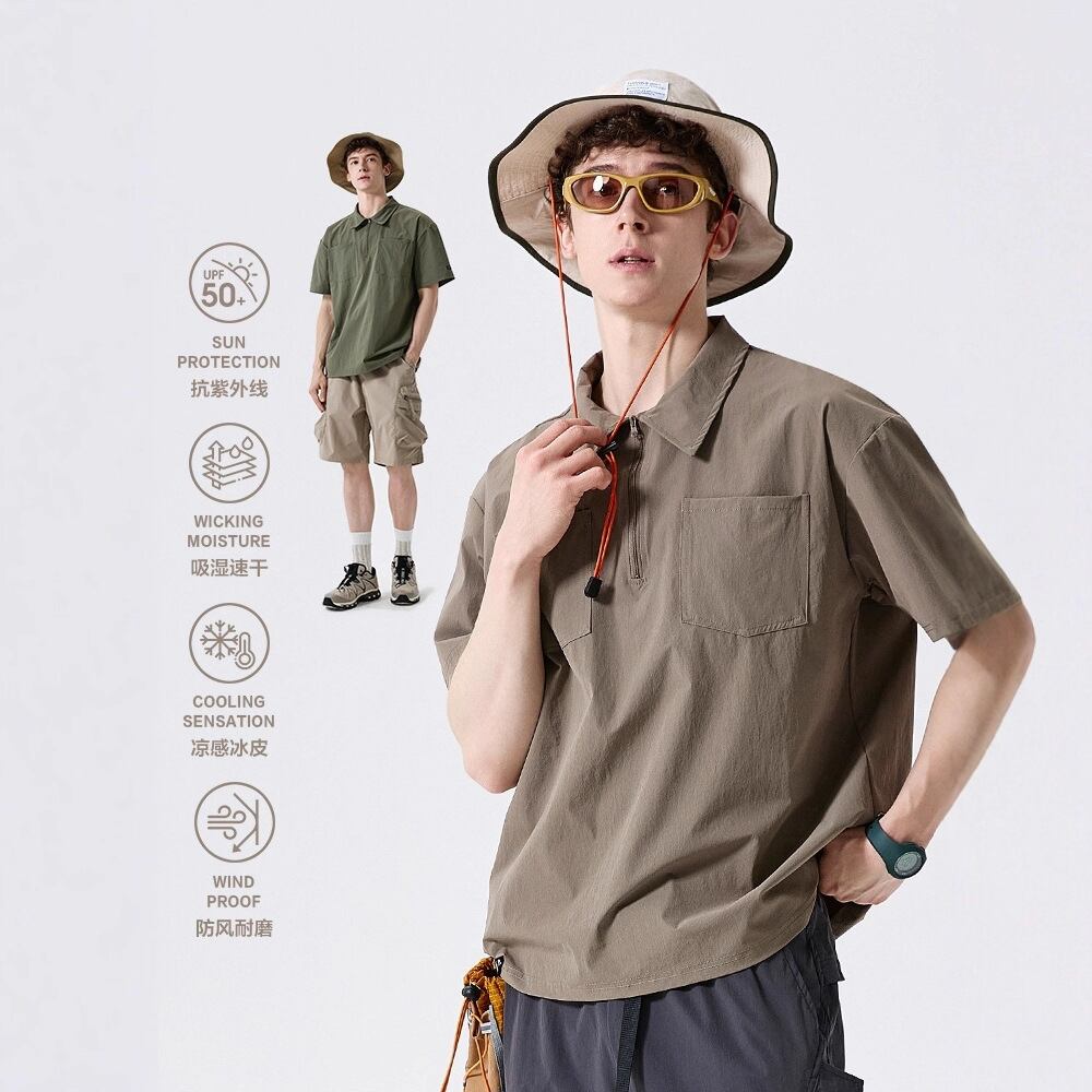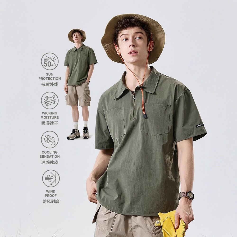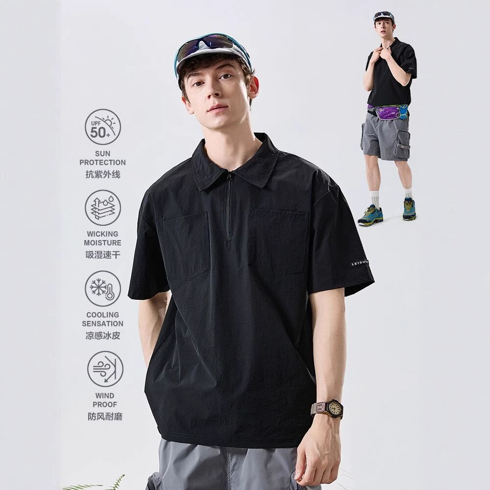 【大人気】アウトドア用日焼け止め クール速乾 ハーフジッパーポロシャツ メンズ夏多用途ゆったりワークウェア半袖Tシャツのご案内です!洗練されたデザインと快適な着心地を兼ね備えた本商品は、夏のアウトドアシーンにぴったりの一着で、さまざまな活動で大活躍するスタイリッシュなアイテムです。