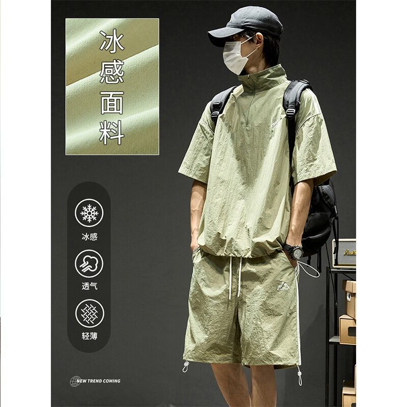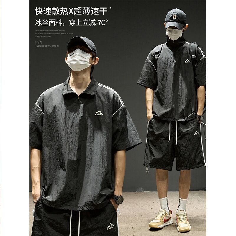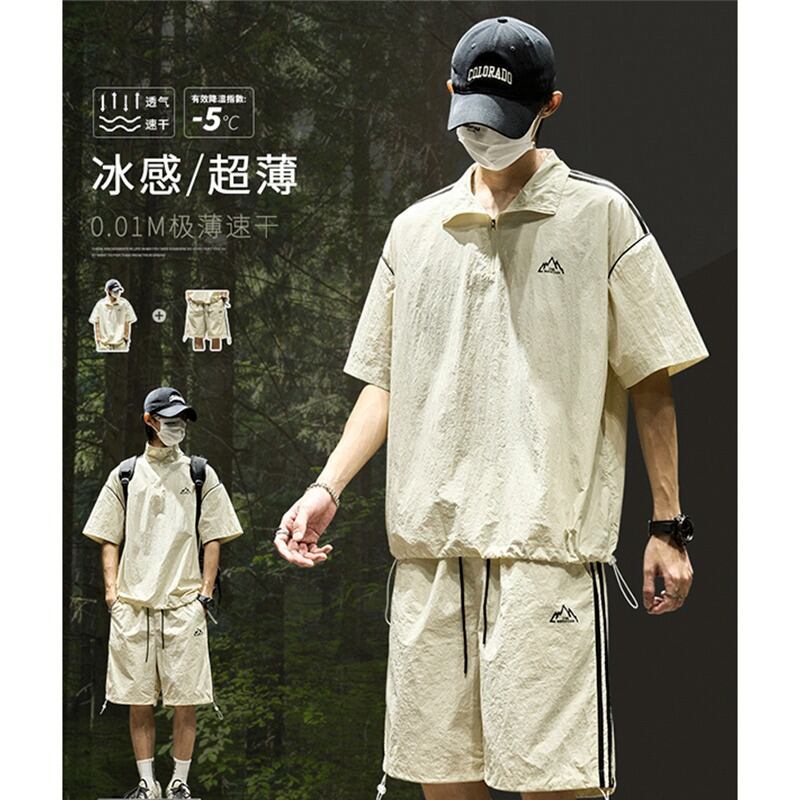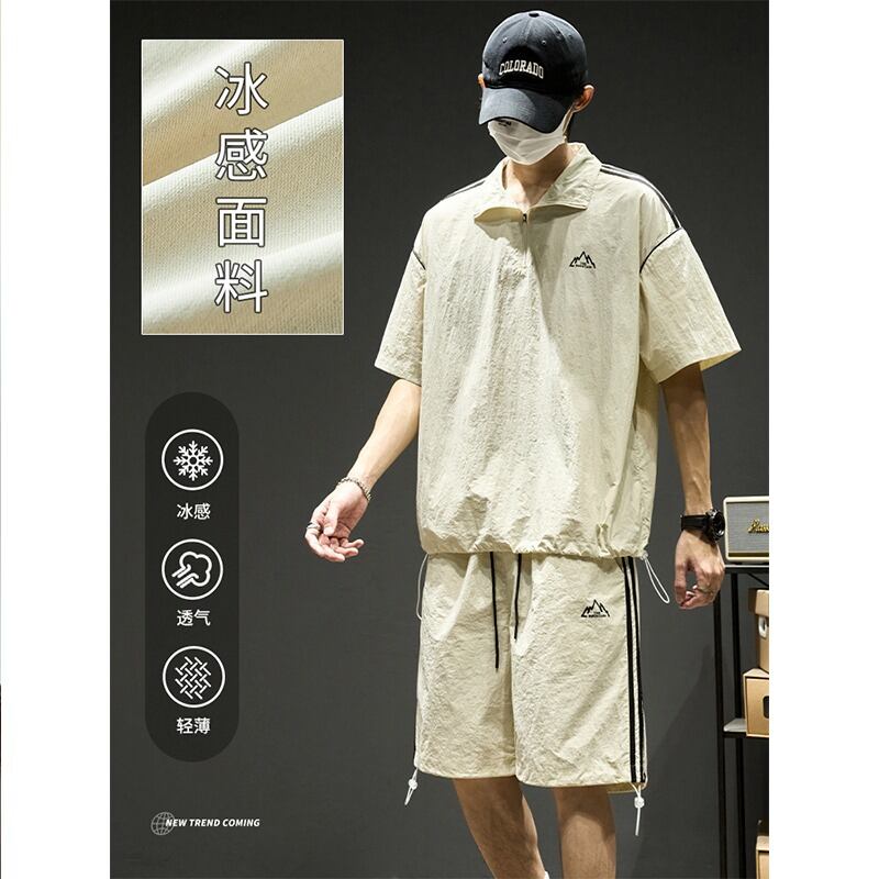 【大人気】アイスシルク スーツメンズ 夏薄手スポーツカジュアルウェアトレンドブランド 半袖ショートパンツ付きハンサムメンズ服セットが登場です!このアイテムは、暑い季節にぴったりなスタイリッシュで快適なカジュアルウェア。アイスシルク素材を使用しており、軽やかで通気性に優れています。