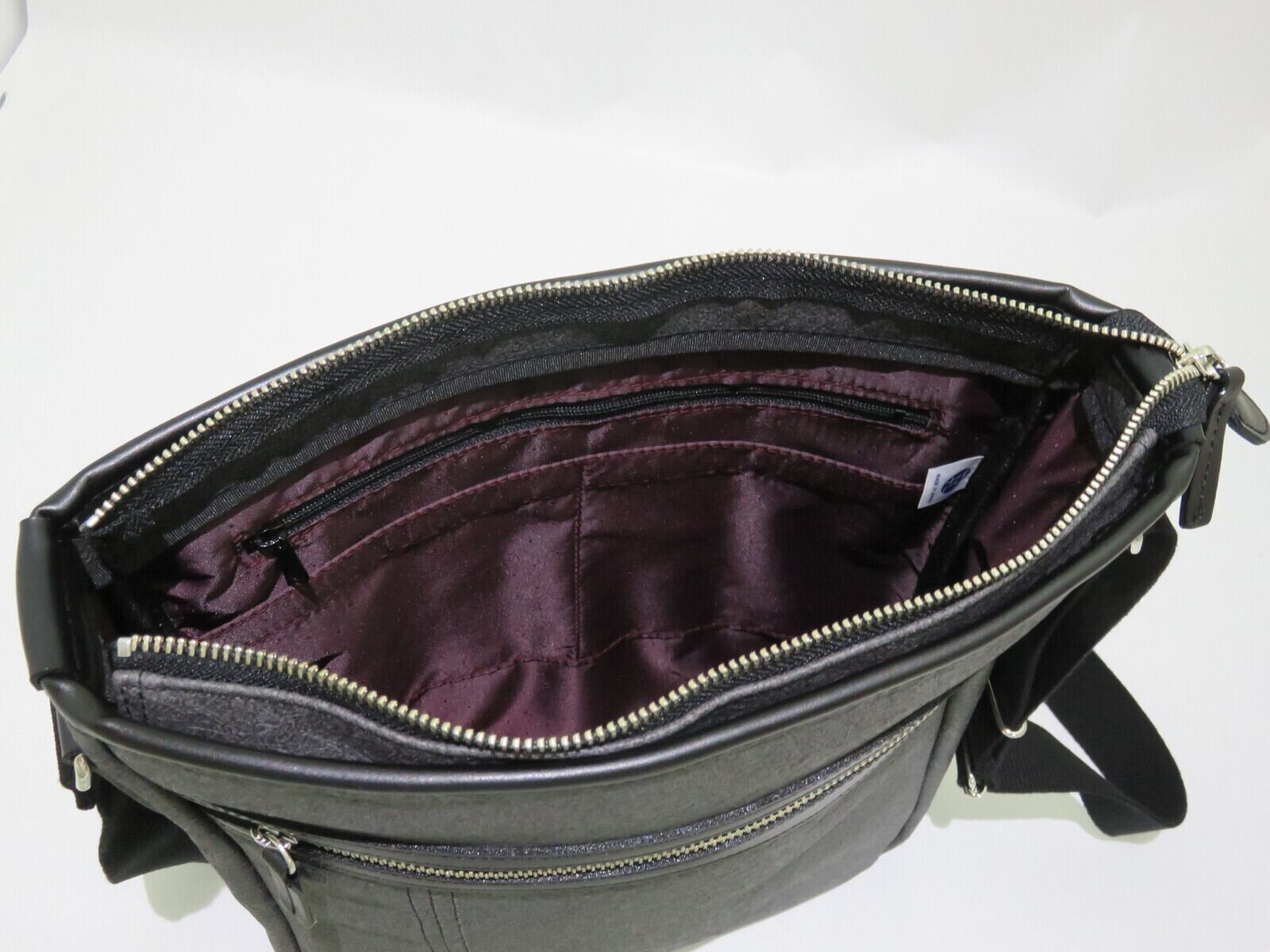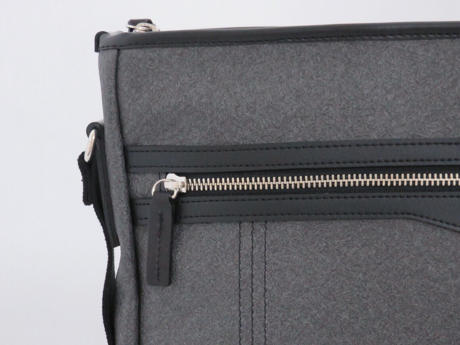 本体生地はPVCレザーの【色舞(しきぶ)】という、通常は高級ソファーなどに使用される素材です。高級感、深みのある色・シボが特徴的であります。織りのミックス感を表現した新感覚PVCレザーということで、弊社の新たなるチャレンジとしてこの生地を使用したショルダーバッグを作り上げました!