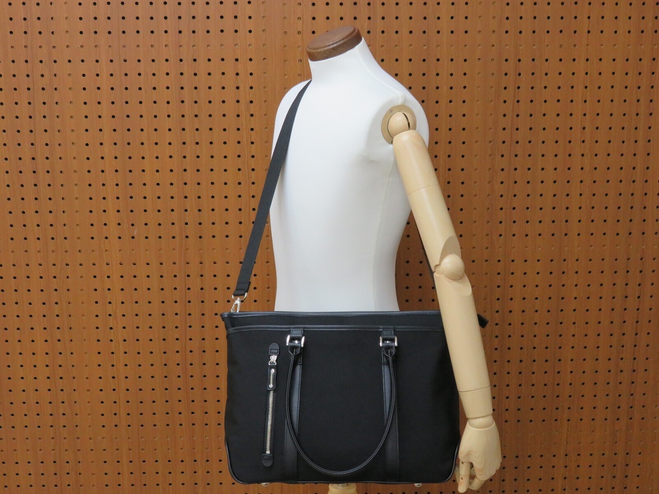 ハンドル部分は肩かけ・手提げ兼用で使用できる長さとなっています。着脱・長さ調節可能ショルダーベルトも付属しているのでシチュエーションに応じて使い分けができます。