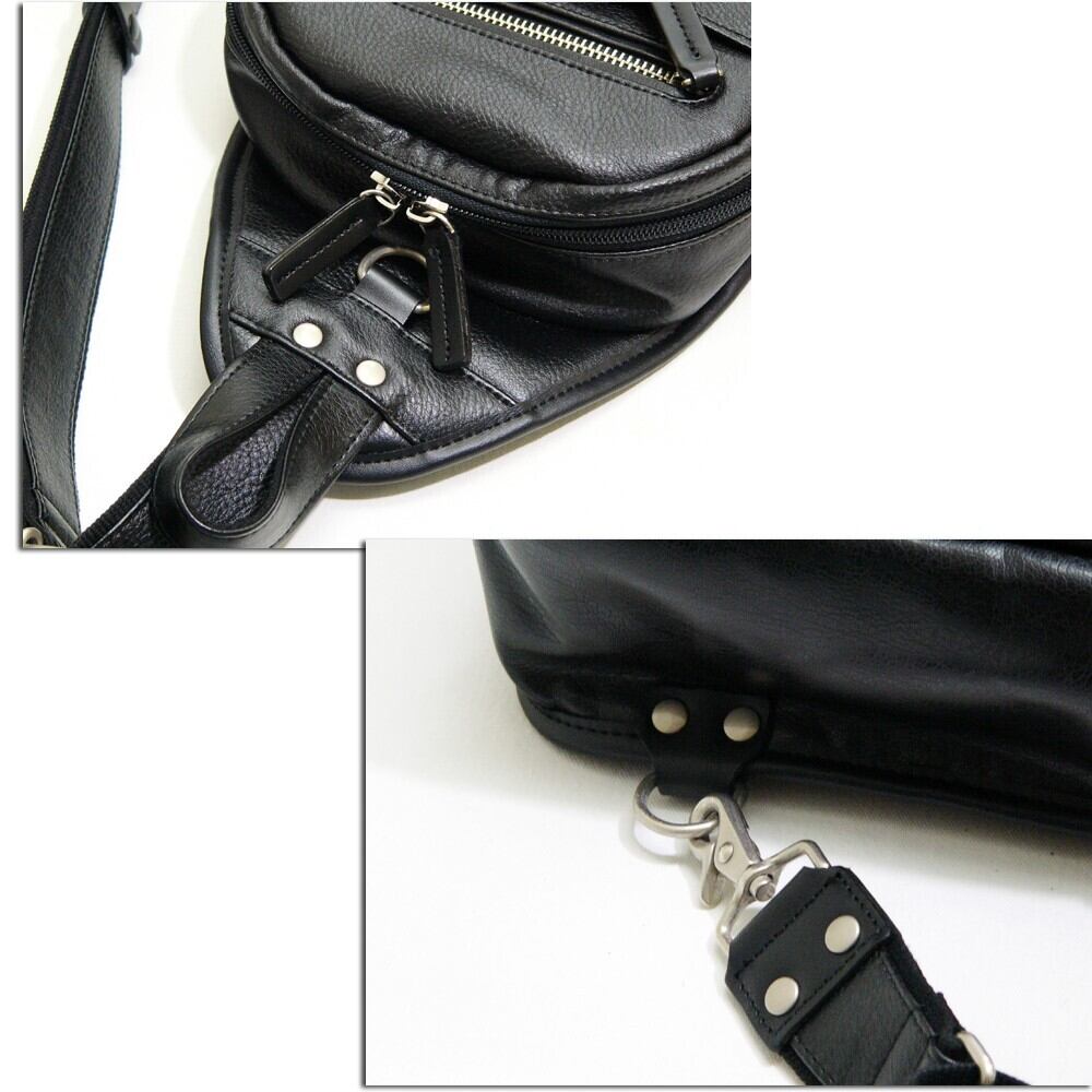 本体は、しっとりとした手触りの物と、艶のと張りのある二種類の合成皮革のコンビになっていて、光線の加減や手触りで微妙に質感の違いを感じられます。又、雨や汚れに強くお手入れも簡単です。