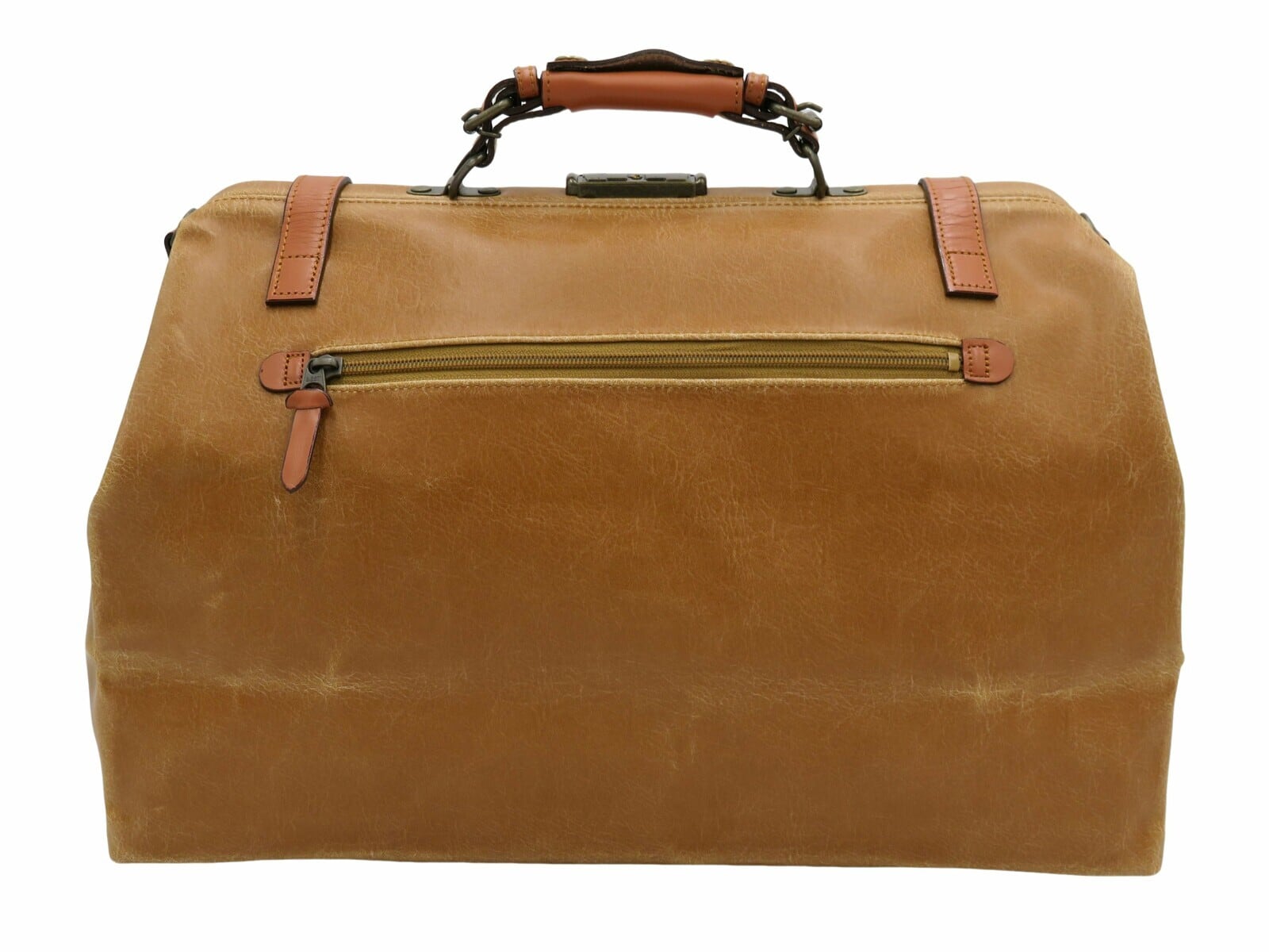 デザインのアクセントにもなっている2本のベルトや、ファスナーの引手なども本革製です。