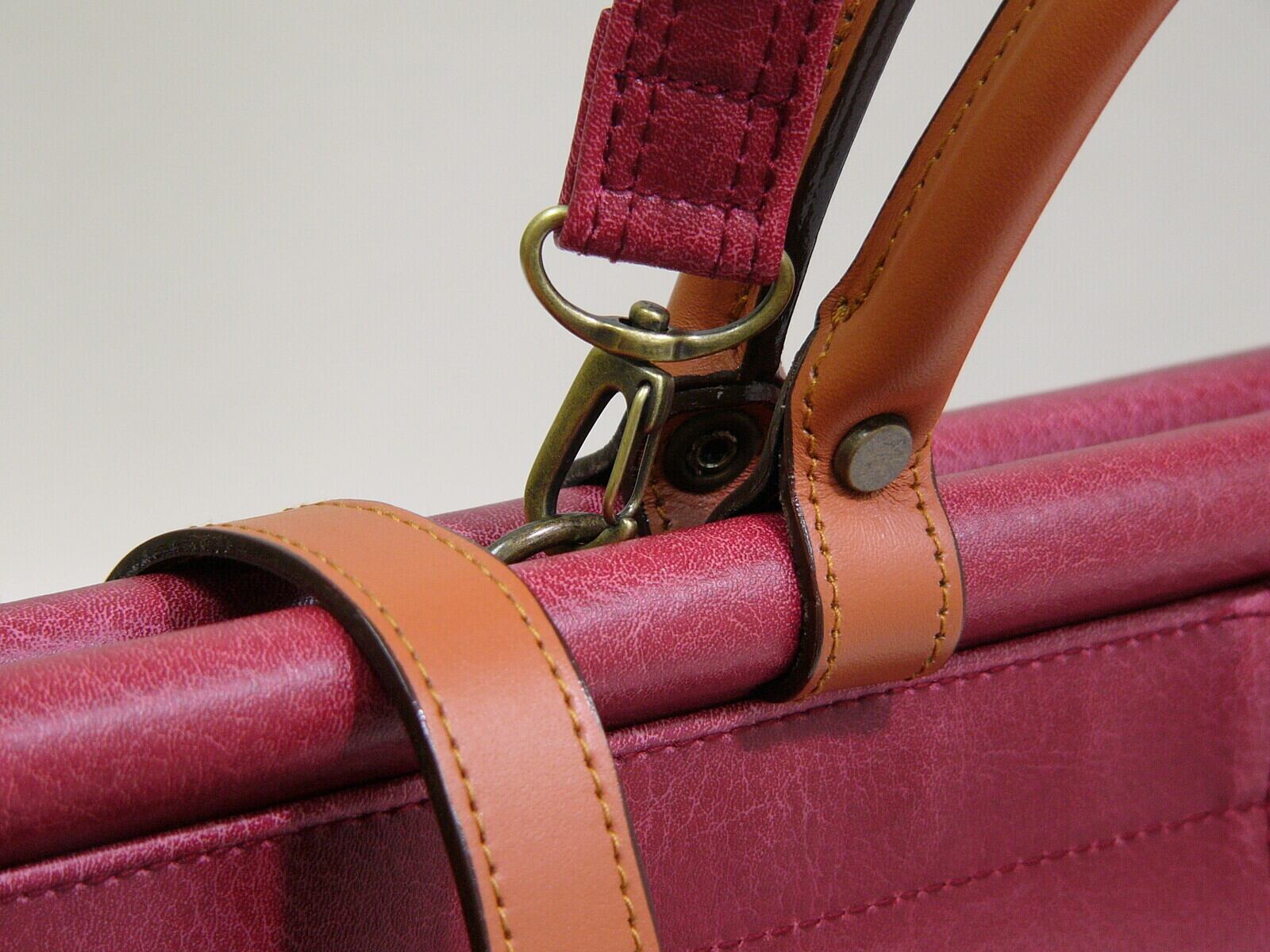 いつも手にするハンドル・ベルト部分、ファスナーの引き手は、凝った作りの本革製で使う程に手に馴染んできます。