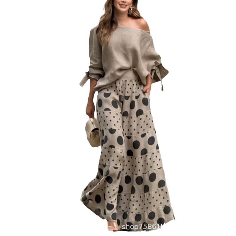 大人気の【欧米国境を越えた婦人服 カジュアル ショルダープリントパンツ おしゃれ2点セット】は、トレンドを押さえたデザインで、カジュアルな日常使いに完璧なアイテムです。ユニークなショルダープリントが施されたトップスと、リラックス感のあるパンツのセットは、スタイルと快適さを両立させた一着です。友達とのお出かけや、通勤スタイルにも幅広く対応します。