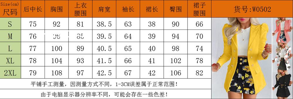 大人気の【春秋外国貿易ファッション プリント 姫袖ショートスカートスーツ 職業服 婦人スーツ】は、洗練されたデザインで、働く女性に魅力を引き立てるアイテムです。このスーツは、ファッション性と実用性を兼ね備えた商品で、春や秋のビジネスシーンをスタイリッシュに彩ります。