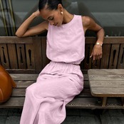 高品質なコットンリネン素材を使用しており、通気性が良く、軽やかな着心地が魅力です。ノースリーブのベストとスリット入りのワイドレッグパンツは、涼しげで動きやすく、快適さとスタイルを両立させています。このデザインは、特に春や夏におすすめであり、さまざまなシーンでのコーディネートが楽しめます。