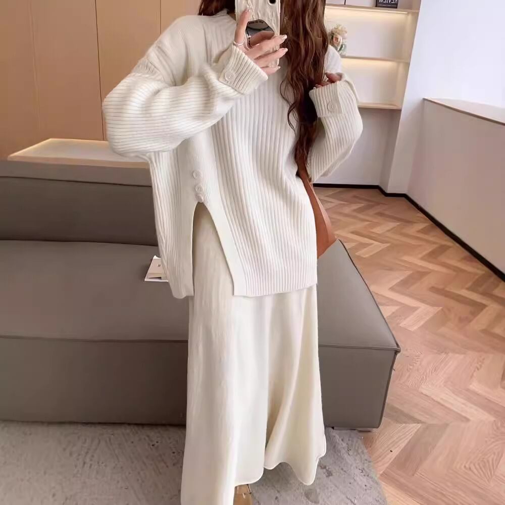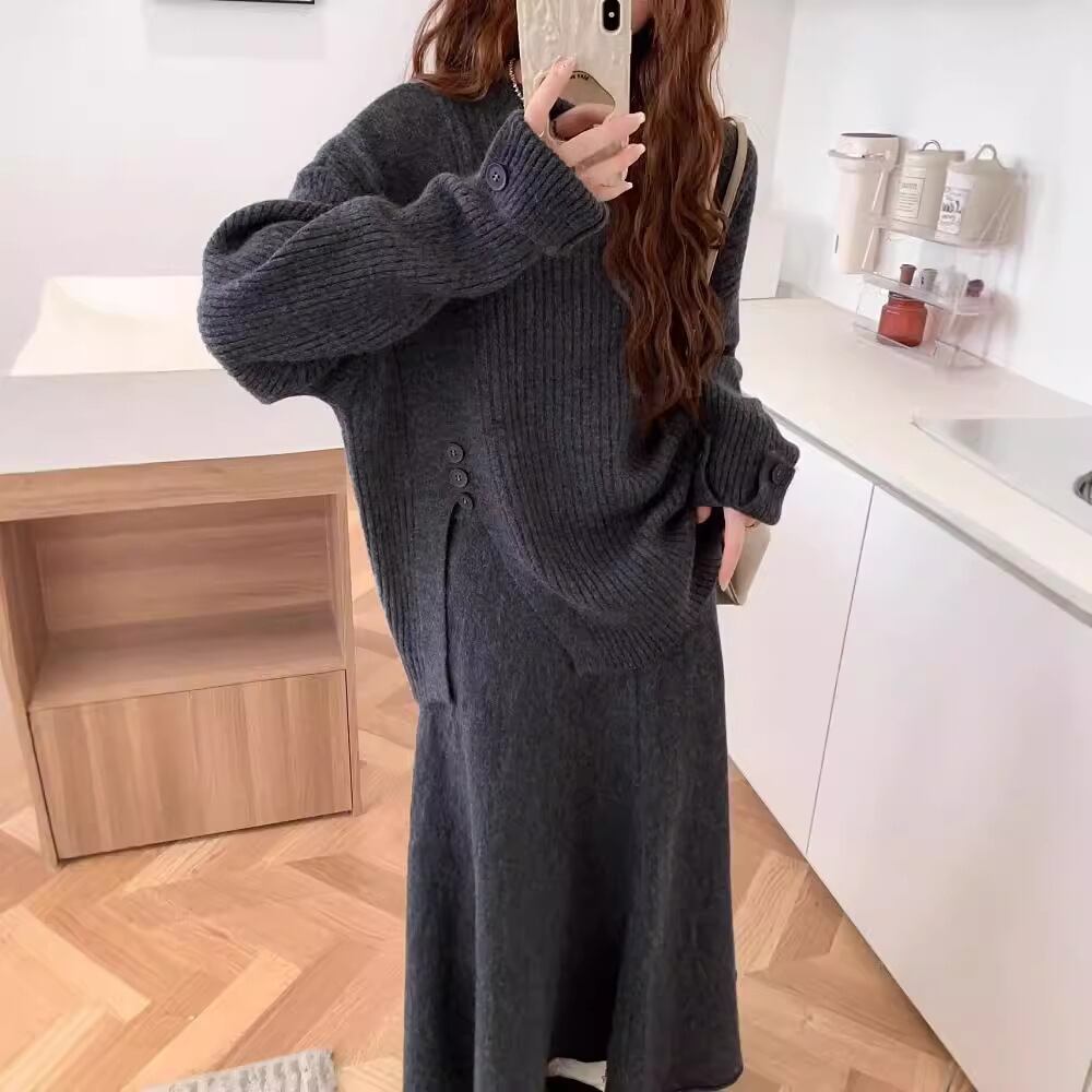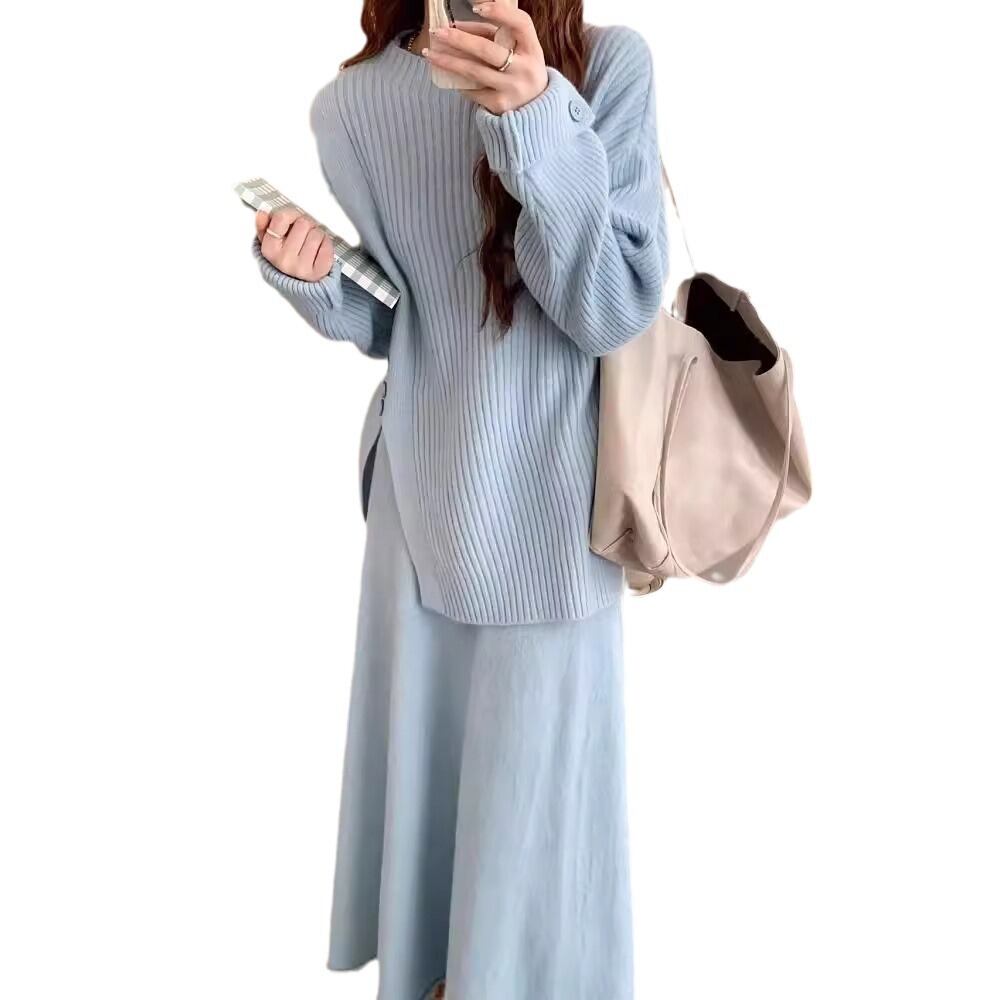 大人気の【レイジースタイル セータースーツスカート レディース秋冬 ルーズラウンドネック スリットニットセータートップスカートファッショナブルなツーピーススーツ】は、秋冬シーズンにぴったりなトレンディなアイテムです。ルーズフィットのデザインがリラックスした雰囲気を演出し、日常使いからお出かけまで様々なシーンでのコーディネートを楽しめます。