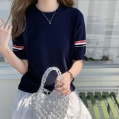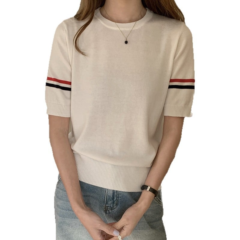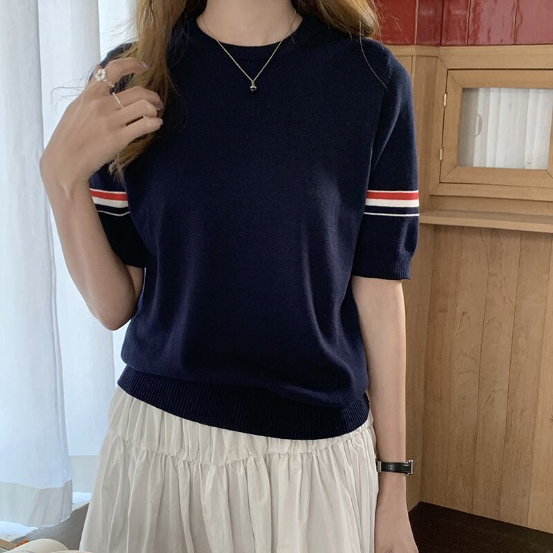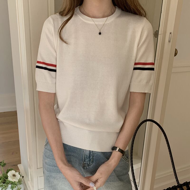 大人気の【大人気】夏の新しいスタイル 綿の薄いニット半袖 ラウンドネック カジュアルファッション アウターウェアTシャツ平行棒レディーストップス卸売】は、夏にぴったりな爽やかでスタイリッシュなアイテムです。軽やかな綿素材を使用したニット半袖で、ラウンドネックデザインが特徴的。カジュアルな印象を与えつつ、デイリーユースやお出かけにも最適な一着です。