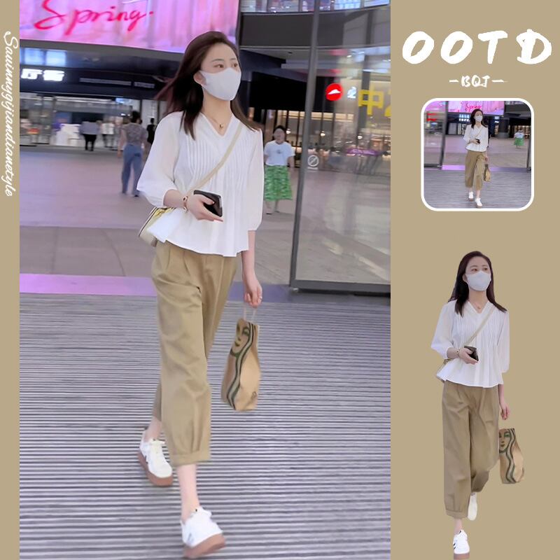 大人気の【大人気】夏の婦人服 新型 小さいサイズ ふんわりサイズ 若見え 遊び心のある活発なトップスのツーピーススーツ 完全なセットは、夏にぴったりな明るくスタイリッシュなアイテムです。このツーピーススーツは、遊び心のあるデザインと若々しい印象を与えるスタイルが特徴で、カジュアルでも特別なお出かけでも活躍します。