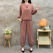 高品質な綿麻素材を使用しており、肌触りが良く、さらりとした着心地を実現しています。長袖シャツとパンツの組み合わせは、動きやすさと女性らしさを感じさせ、あなたのスタイルをより引き立ててくれることでしょう。このアイテムは、デイリーユースからカジュアルなパーティーまで、多様なコーディネートを楽しむための魅力的な選択肢となります。