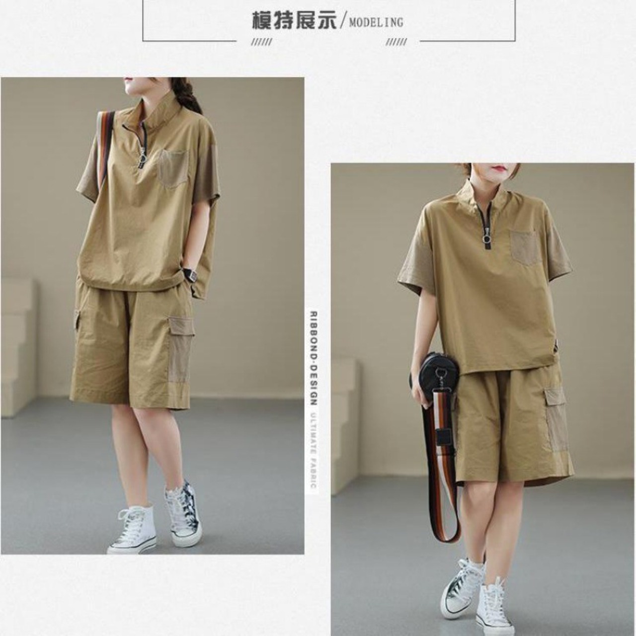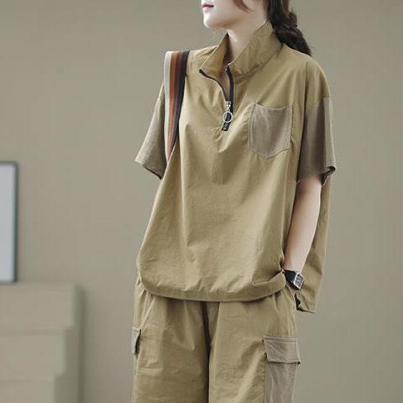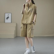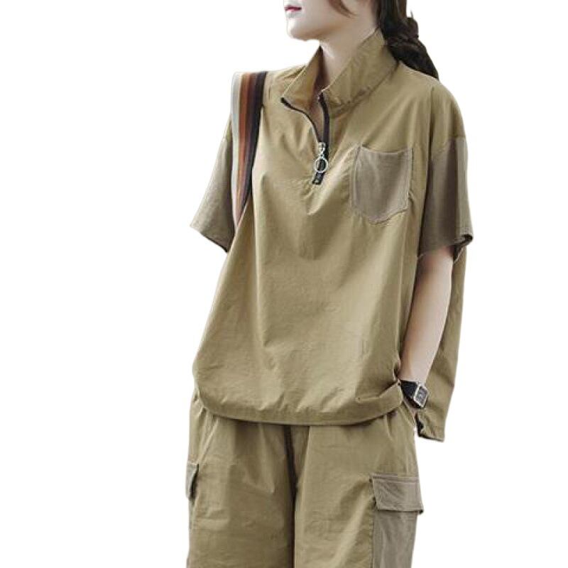 大人気の【大人気】スーツ夏新作 ジッパースタンドカラー カジュアル 万能 レディース 無地 ルーズショートパンツTシャツファッションスーツは、シンプルでありながらもスタイリッシュなデザインが魅力的なアイテムです。このファッションスーツは、夏の季節にぴったりの軽やかな着心地を提供し、カジュアルな日常使いから特別な場面まで、幅広くご利用いただけます!