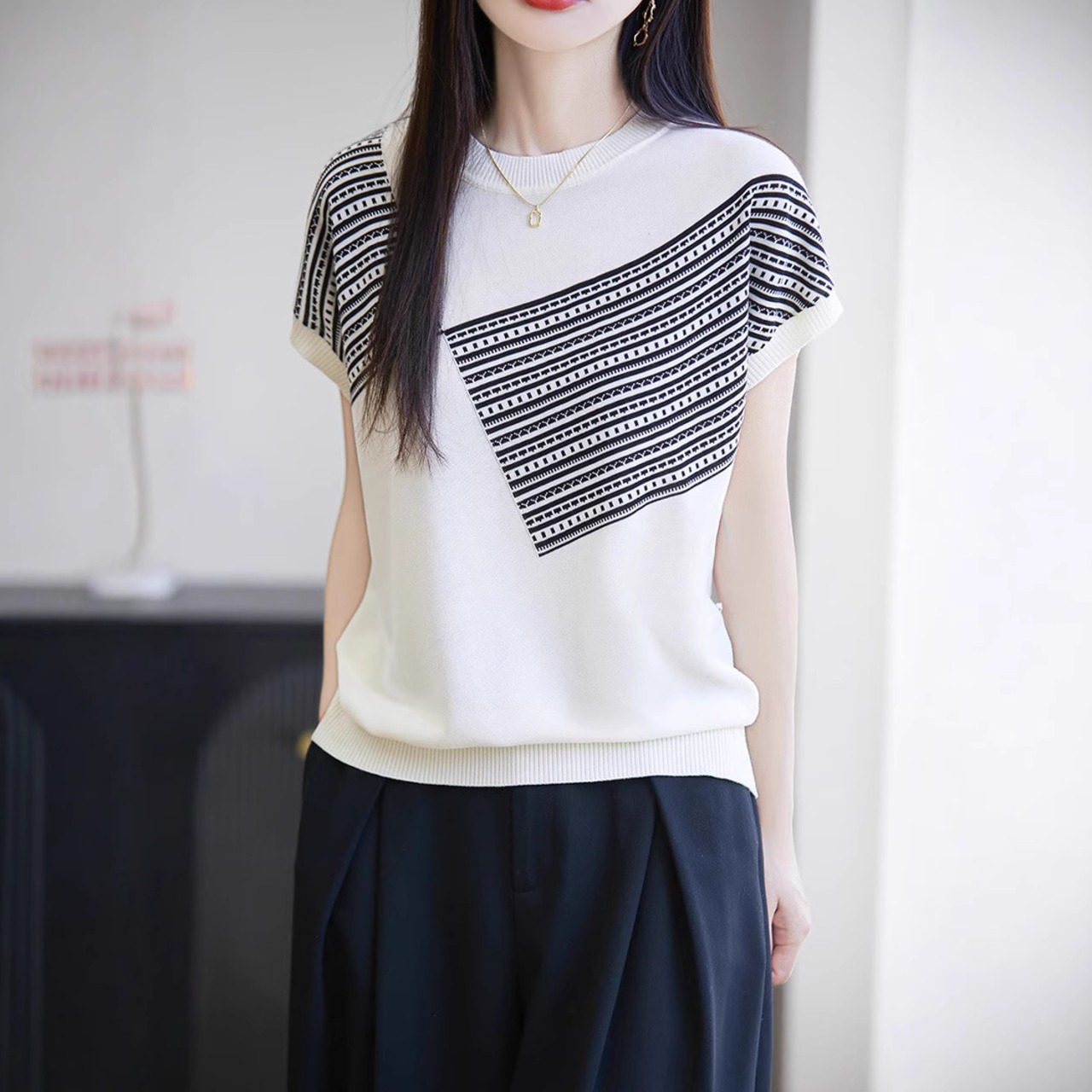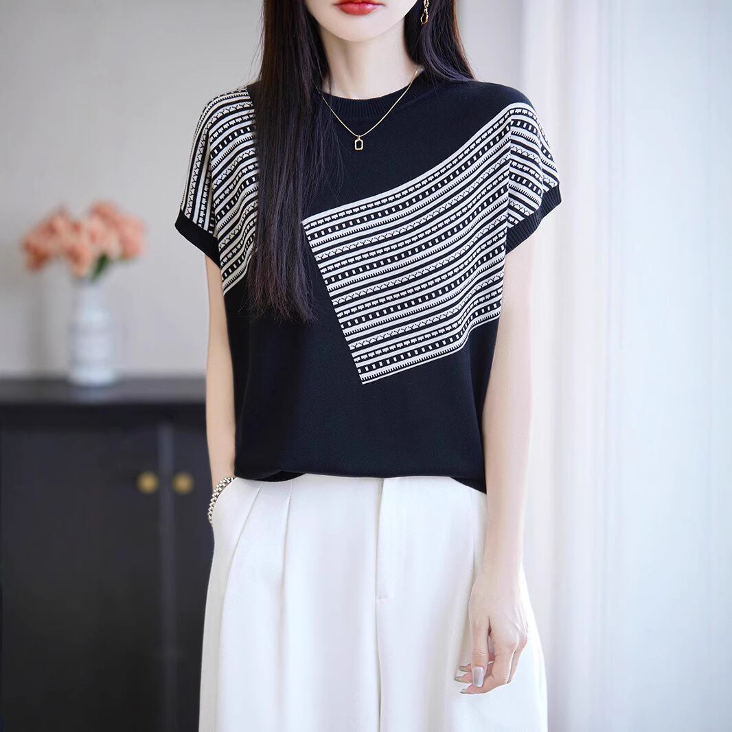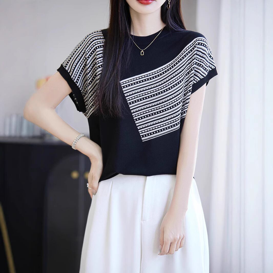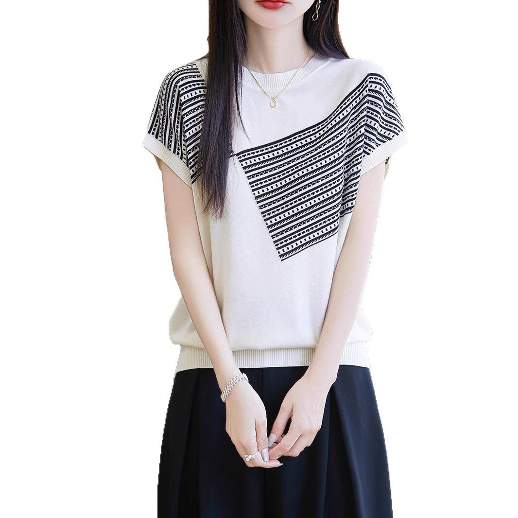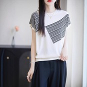大人気の【大人気】デザイン コントラストカラー リヨセルテンセルニット 半袖Tシャツ レディース春夏薄手スタイルレディーストップスブラウスは、シンプルでありながらも洗練されたデザインが魅力のアイテムです。この半袖Tシャツは、春夏の季節にぴったりの軽やかな着心地を提供し、カジュアルなお出かけやリラックスした時間を過ごす際に最適な選択肢です!