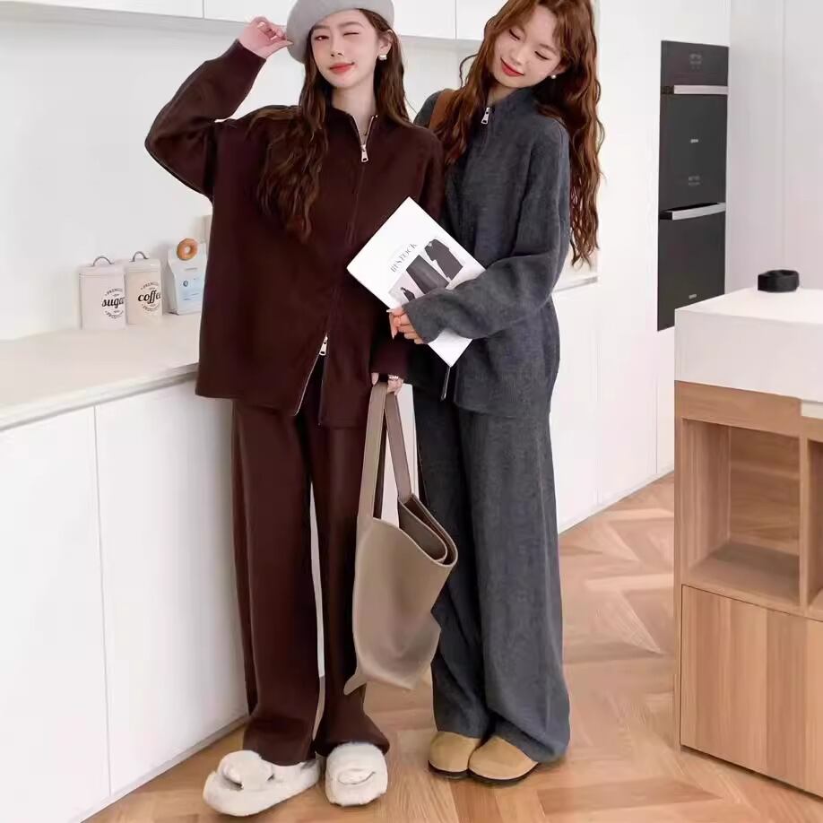 大人気の【大人気】カジュアルファッションスーツ レイジースタイル セータージャケットレディース秋冬ゆったりワイドレッグパンツニットツーピーススーツは、モダンでありながらもリラックス感を大切にしたデザインが魅力のアイテムです。このツーピーススーツは、秋冬シーズンにぴったりで、日常のコーディネートからカジュアルなお出かけまで幅広くご活用いただけます!