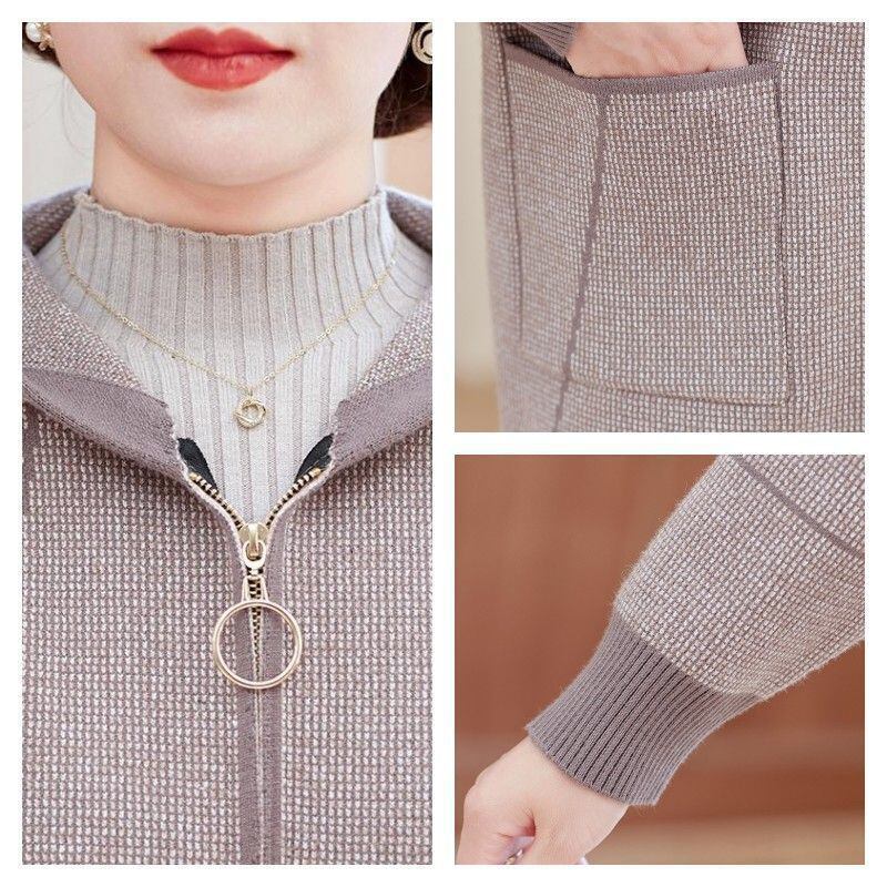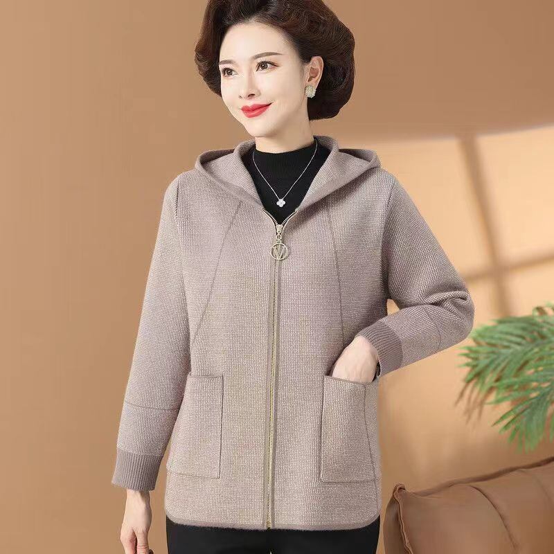 大人気の【大人気】ママの秋服、女性のためのスタイリッシュなカジュアルニットショートジャケット、秋冬の新しい中高年ファッションフード付きカーディガンは、季節の変わり目に最適なアイテムです。このカーディガンは、カジュアルなお出かけからリラックスした日常使いまで幅広く活躍します!