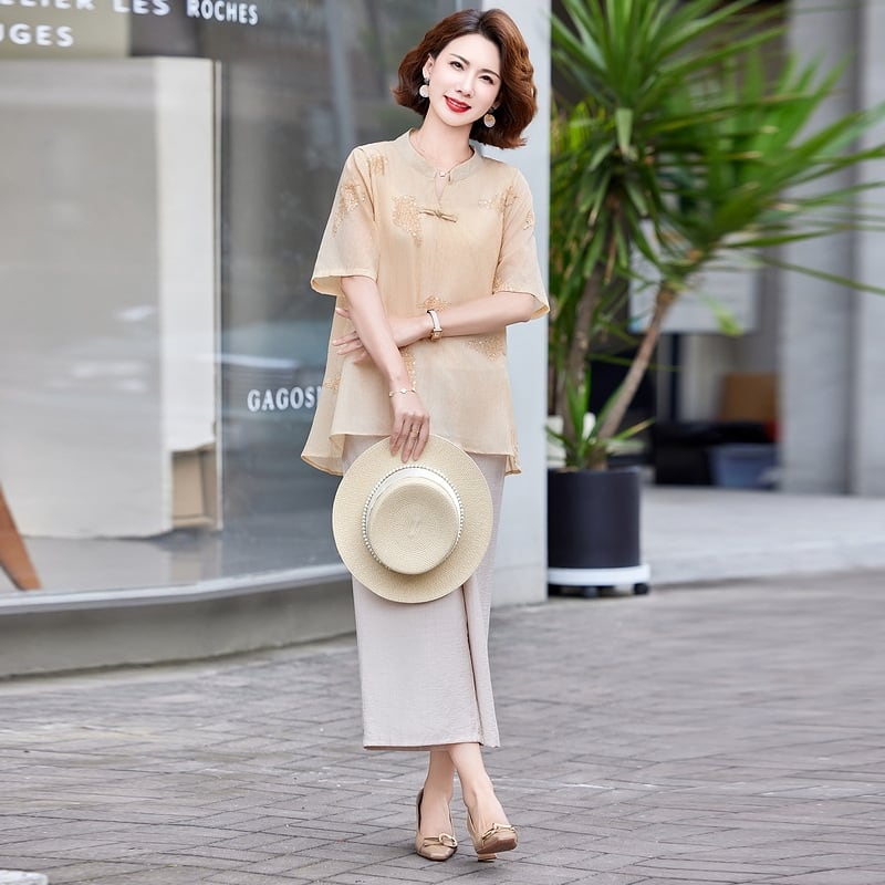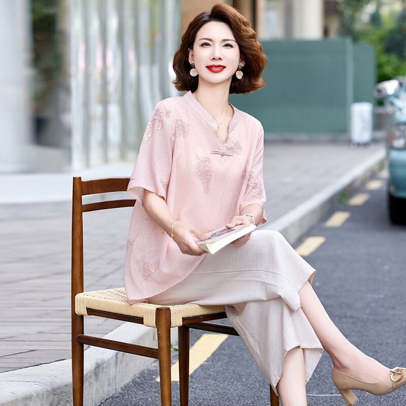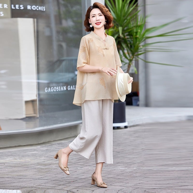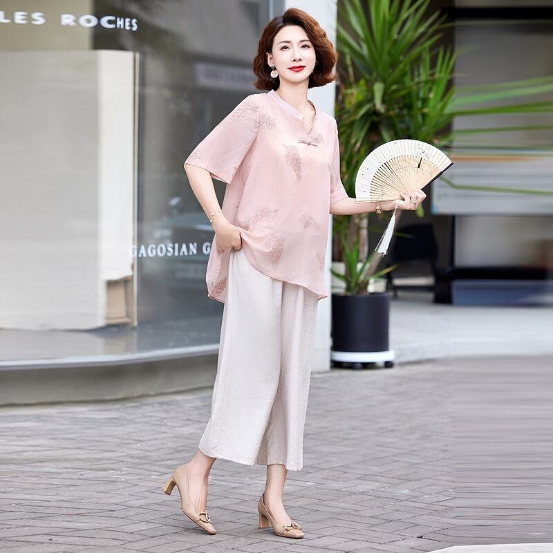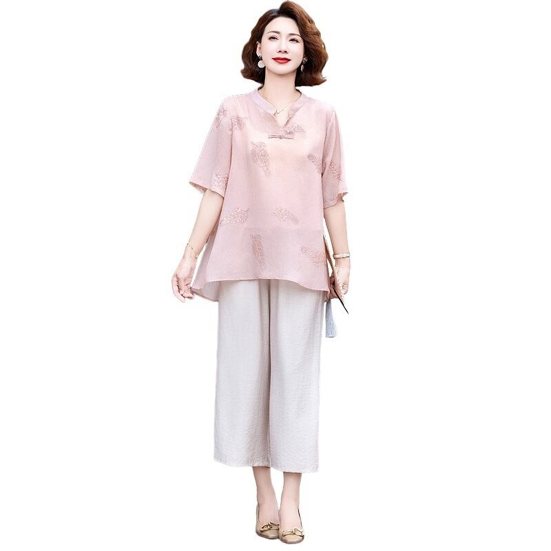 大人気の【大人気】母の日 夏 半袖シャツ ゆったり大きいサイズ 中高年女性夏シフォンブラウスツーピーススーツは、快適さとスタイルを兼ね備えた一品です。このツーピーススーツは、リラックスした日常使いから特別なイベントまで、幅広いシーンで活躍すること間違いなしです!