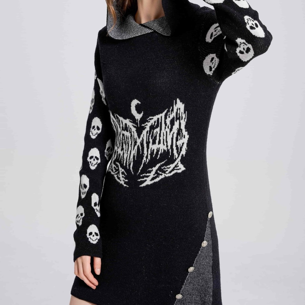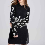 大人気の【大人気】パンクセーターフード付き セーターミディアムとロングサイズのレディース服 クロスボーダー秋と冬トップスゴシックスタイルのニットスカルセーターは、個性的かつスタイリッシュなデザインが魅力のアイテムです。このセーターは、日常のカジュアルコーデから特別なシーンまで、幅広く活躍すること間違いなしです!