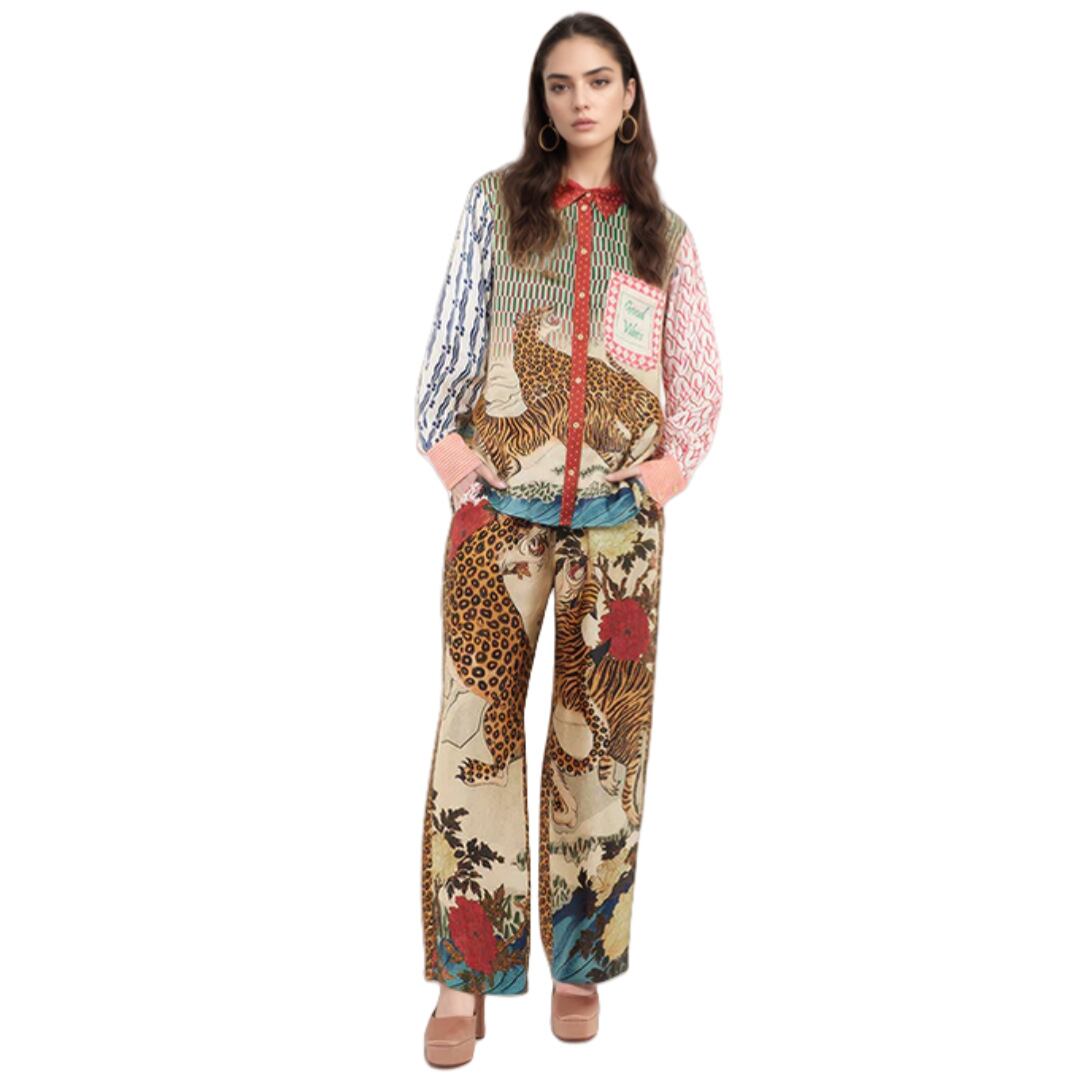 デザイン/個性プリントとワイドレッグパンツ