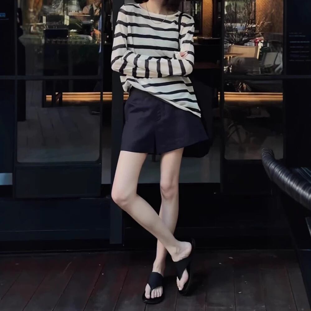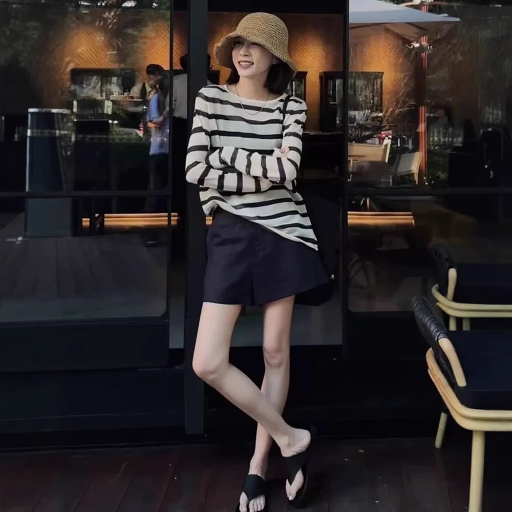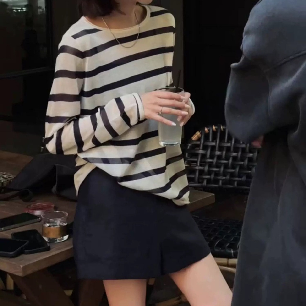 高品質なテンセル素材を使用しており、軽やかで通気性が非常に良く、肌触りが滑らかなのが特長です。白黒のコントラストストライプデザインが、シンプルながらもモダンでスタイリッシュな印象を与え、さまざまなコーディネートに合わせやすいアイテムになっています。このセーターは、あなたのワードローブにぜひ加えたい春秋のマストアイテムですので、見逃さないようにしましょう!