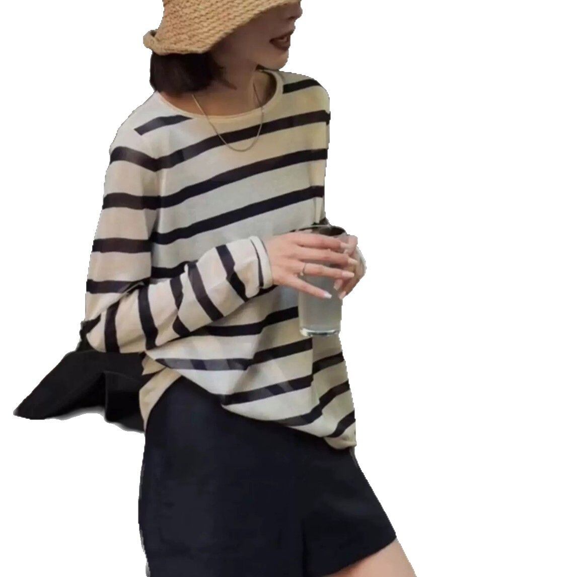 大人気の【大人気】白黒コントラストストライプ、軽くて通気性のあるテンセルニットセーター、レディース春秋新作長袖Tシャツトップストレンドは、洗練されたデザインと驚きの快適さを兼ね備えたアイテムです。このセーターは、春や秋のお出かけやカジュアルな日常スタイルに大活躍すること間違いなしです!