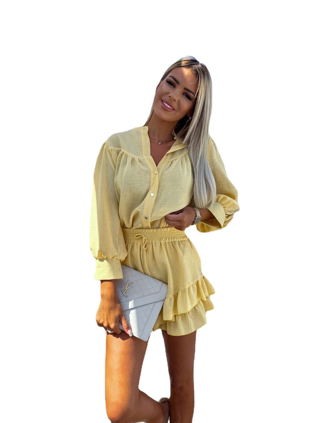 大人気の【大人気】欧米の婦人服新作 越境 カジュアルファッション 綿麻ツーピーススカートスーツシャツ女性は、洗練されたデザインと驚きの快適さを兼ね備えたアイテムです。このツーピーススカートスーツは、夏のお出かけやカジュアルなシーンでの活躍が期待できること間違いなしです!