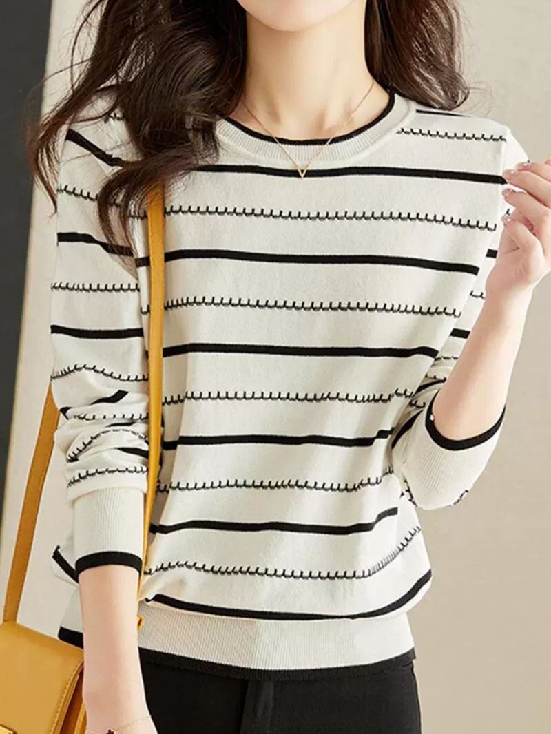 高品質な素材を使用しており、柔らかな肌触りと優れた伸縮性が特長です。黒と白のストライプデザインが、シンプルながらもスタイリッシュな印象を与え、コーディネートの主役としてもサブとしても活躍します。このシャツは、他のアイテムとの組み合わせが自由自在で、あなたのワードローブにぴったりの秋冬のマストアイテムです!