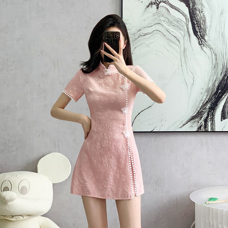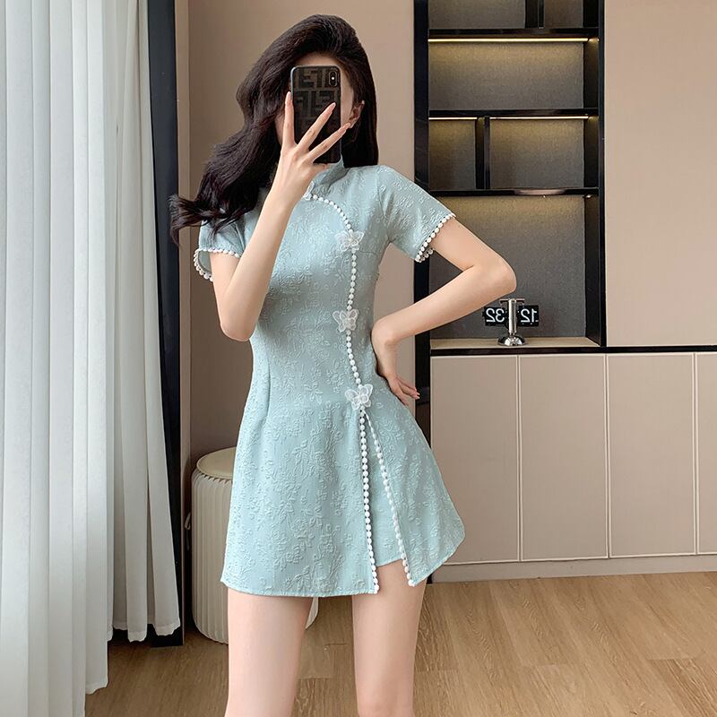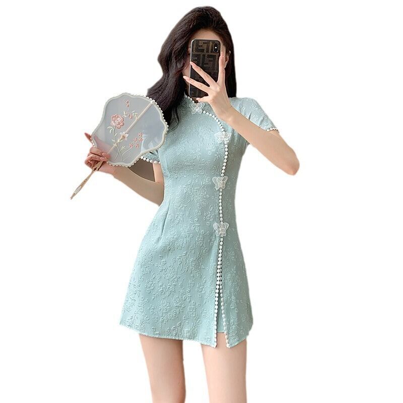 大人気の【大人気】ファッションカジュアルスーツ 夏ジャカードスプライシング新しい中国風改良チャイナドレスショートパンツツーピーススーツは、暑い季節にぴったりのスタイリッシュなアイテムです。この魅力的なスーツは、デイリールックから特別なお出かけまで幅広く活躍できることが期待できます!