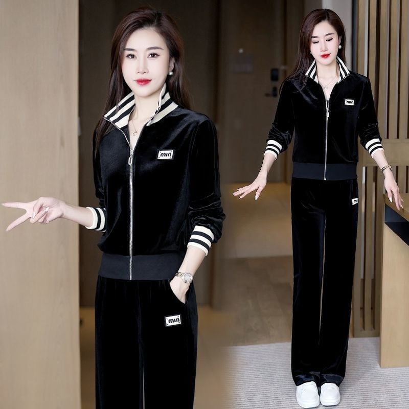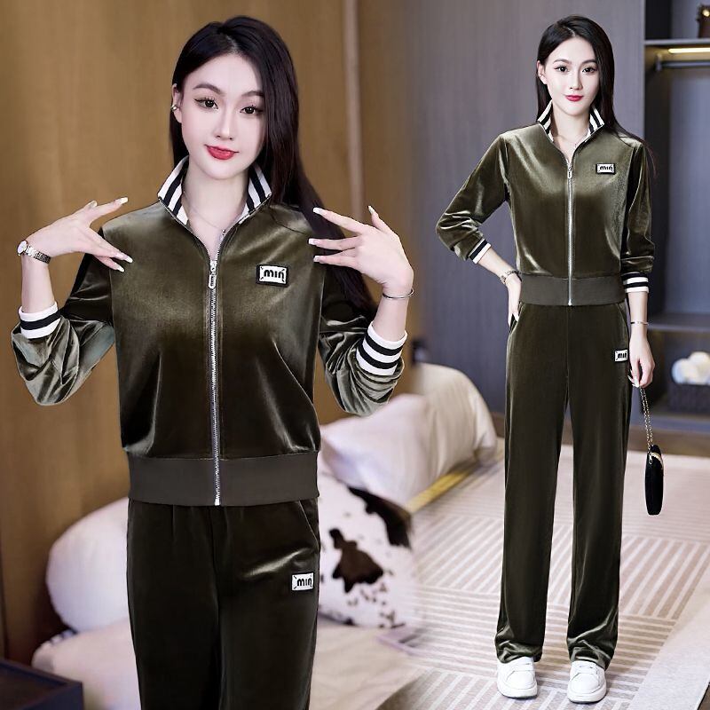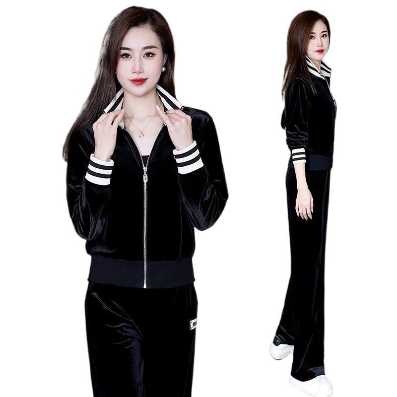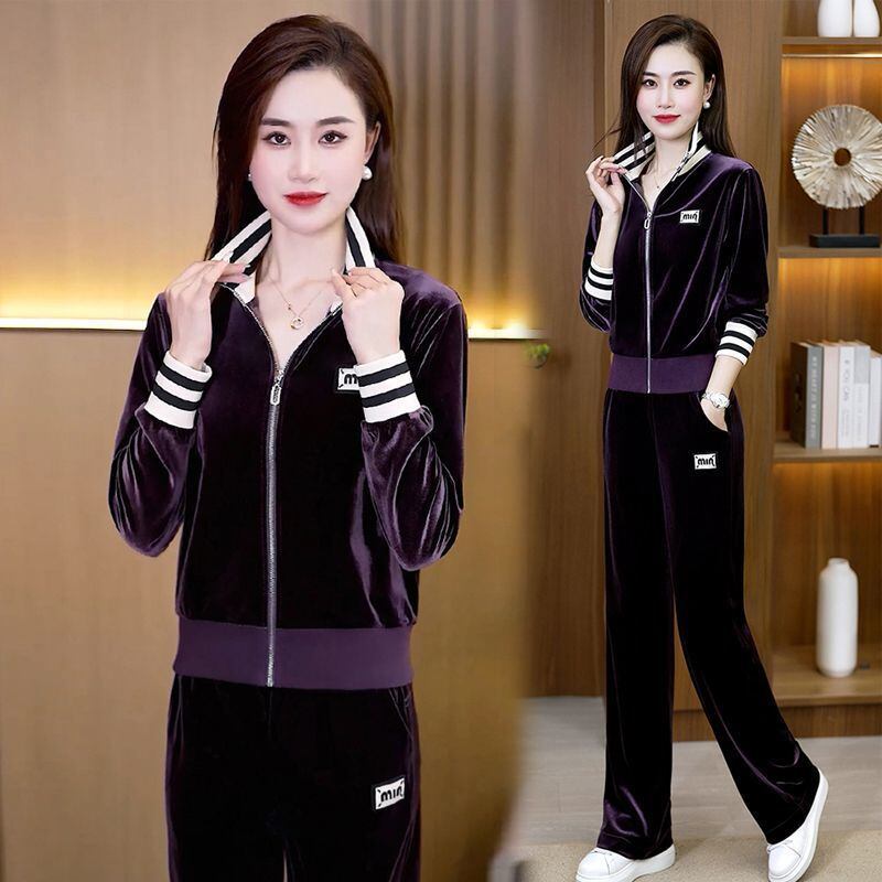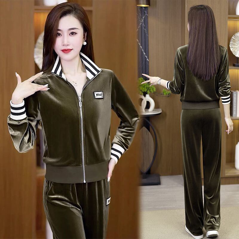 大人気の【大人気】ゴールドベルベットスポーツスーツレディース 春と秋の新しいファッションカジュアルスタイル年齢を減らすワイドレッグパンツツーピーススーツは、春と秋のファッションシーンにぴったりの洗練されたアイテムです。この魅力的なスーツは、デイリールックから特別なお出かけまで幅広く活躍できることが期待できます!