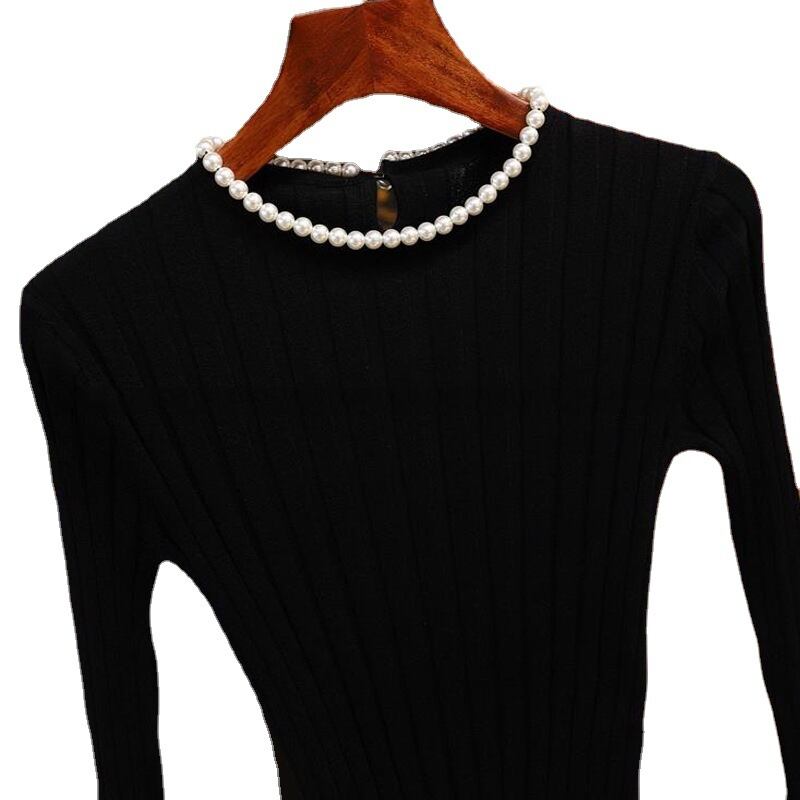 大人気の【大人気】美しいベーシックスタイル!あなたのルックスを引き立て、あなたの気分を引き立てます!パールをちりばめた襟が特徴の、女性に人気のスリムフィットウールセーターは、秋冬のファッションシーンにぴったりのスタイリッシュで快適なアイテムです。この魅力的なセーターは、デイリールックから特別なお出かけまで幅広く活躍できることが期待できます!
