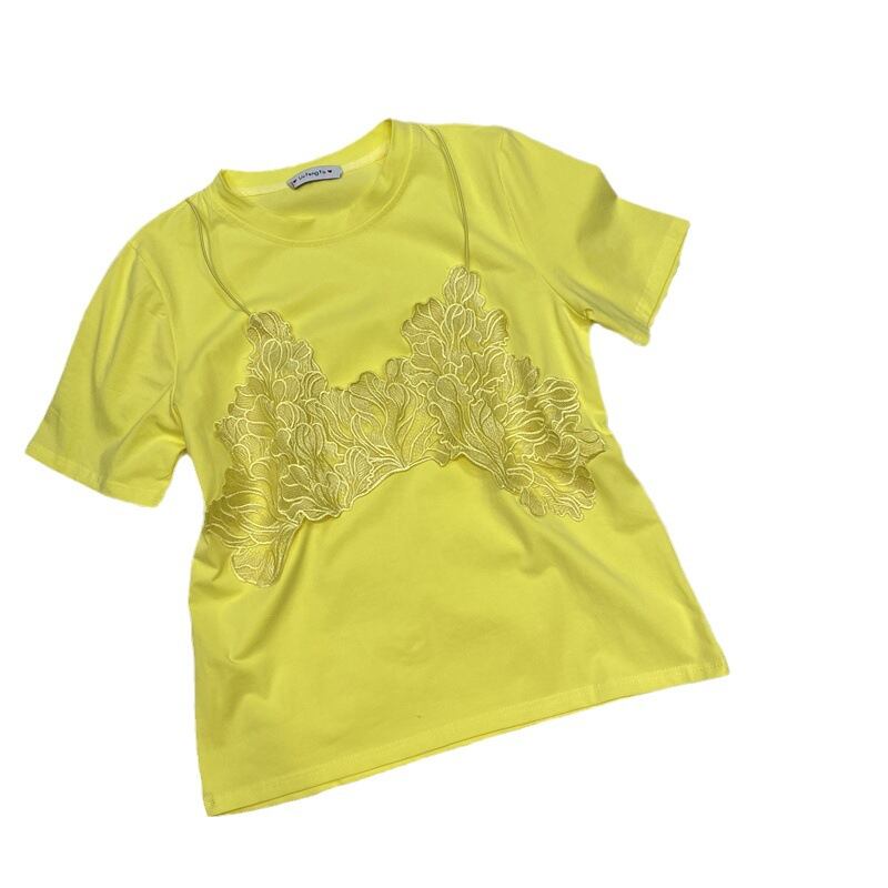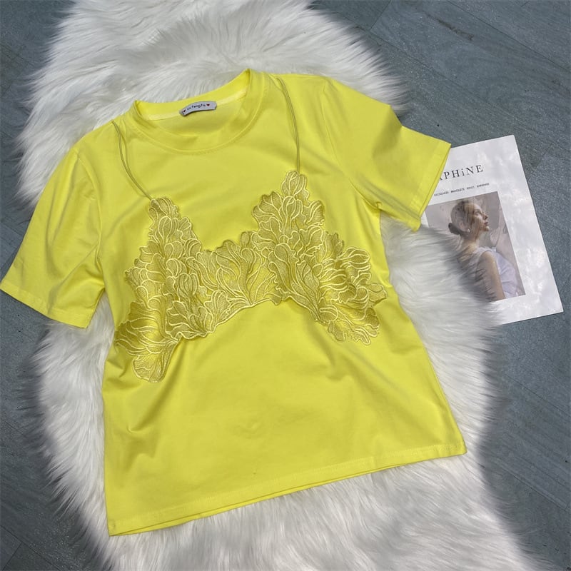 大人気の【大人気】欧米の貿易ファッションTシャツ、年齢を感じさせないレースサスペンダー、夏用のフェイクツーピース半袖ゆったりトップスは、これからの季節にぴったりの洗練されたアイテムです。このトップスは、デイリールックからカジュアルなお出かけシーンまで、さまざまな場面であなたの魅力を引き立てることが期待できます!