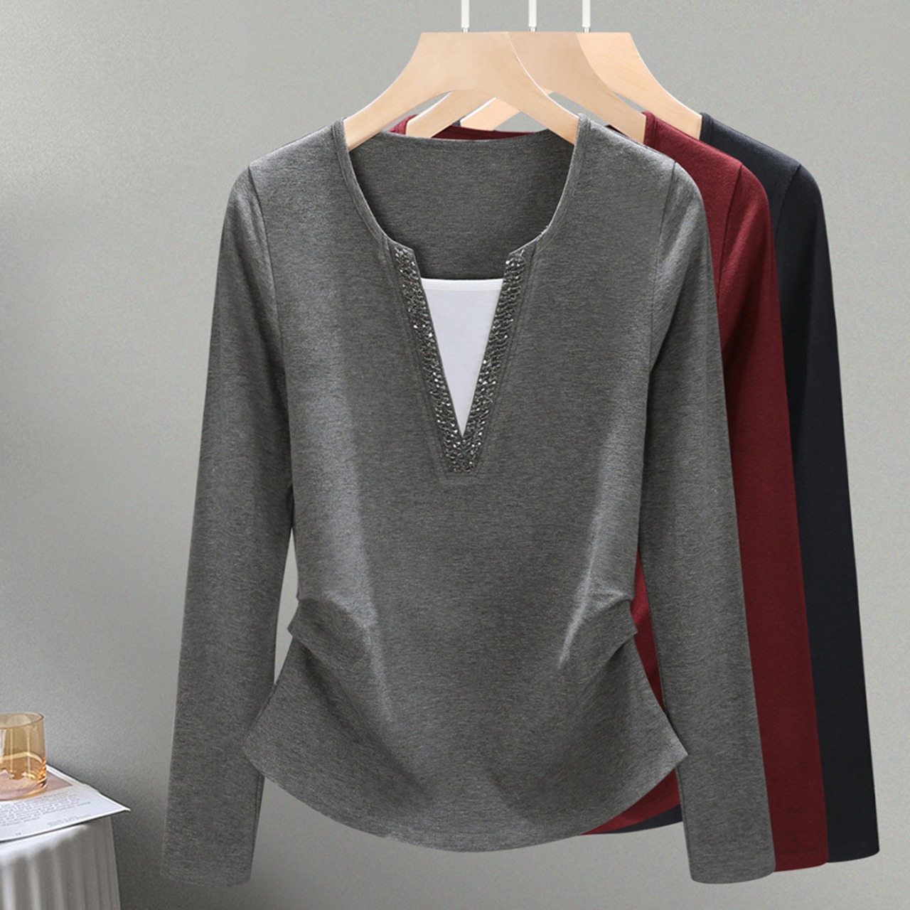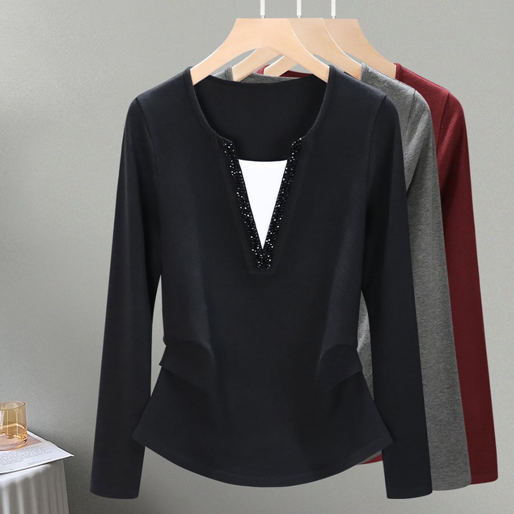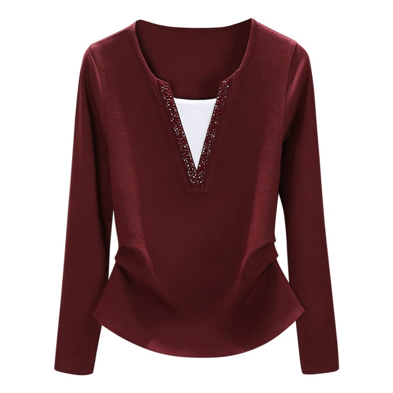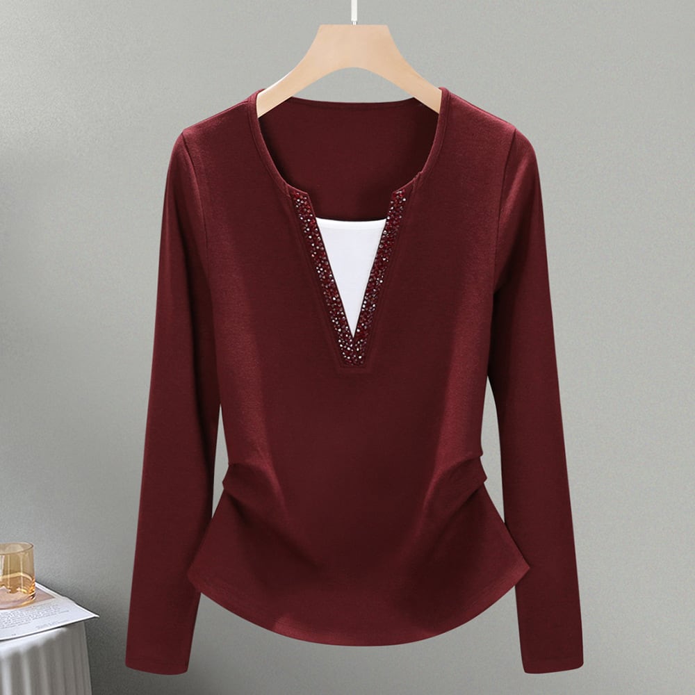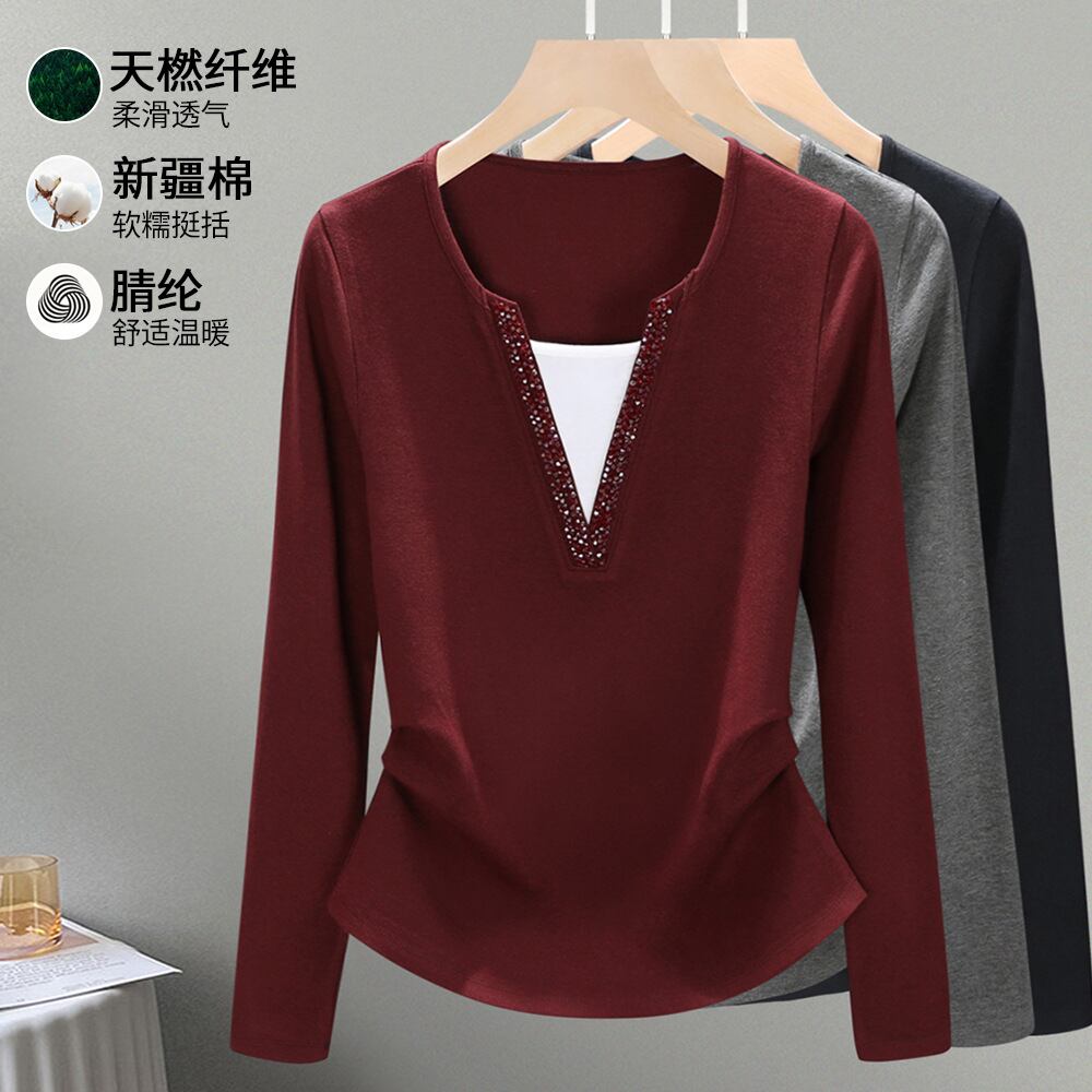大人気の【大人気】アンコラレッド雰囲気レディースフェイクツーピースボトムシャツエレガントレイヤードインナーウェアレディースビーズトップは、シーズンを問わず様々なシーンで活躍する魅惑的なアイテムです。このインナーウェアは、デイリースタイルから特別なシーンまで、あなたの魅力を引き立ててくれることが期待できます!