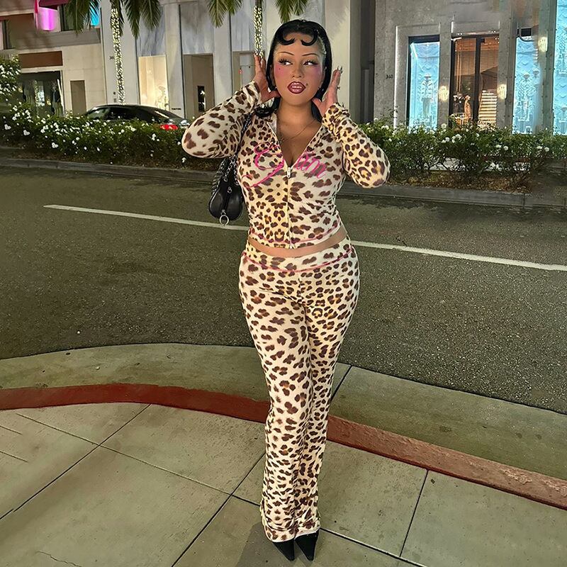 大人気の【大人気】クロスボーダーヨーロッパとアメリカのスタイル 夏の新しいプリントフード付きカーディガントップヒョウ柄ハイウエストタイトパンツスーツレディースは、夏のシーズンを通じて様々なシーンで活躍するスタイリッシュなアイテムです。このファッションスーツは、デイリースタイルからお出かけまで、あなたのファッションを魅力的に演出することが期待できます!