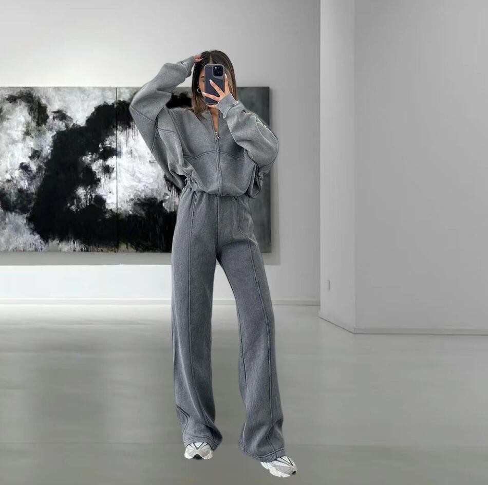 デザイン/無地のカジュアルルーズツーピーススーツ