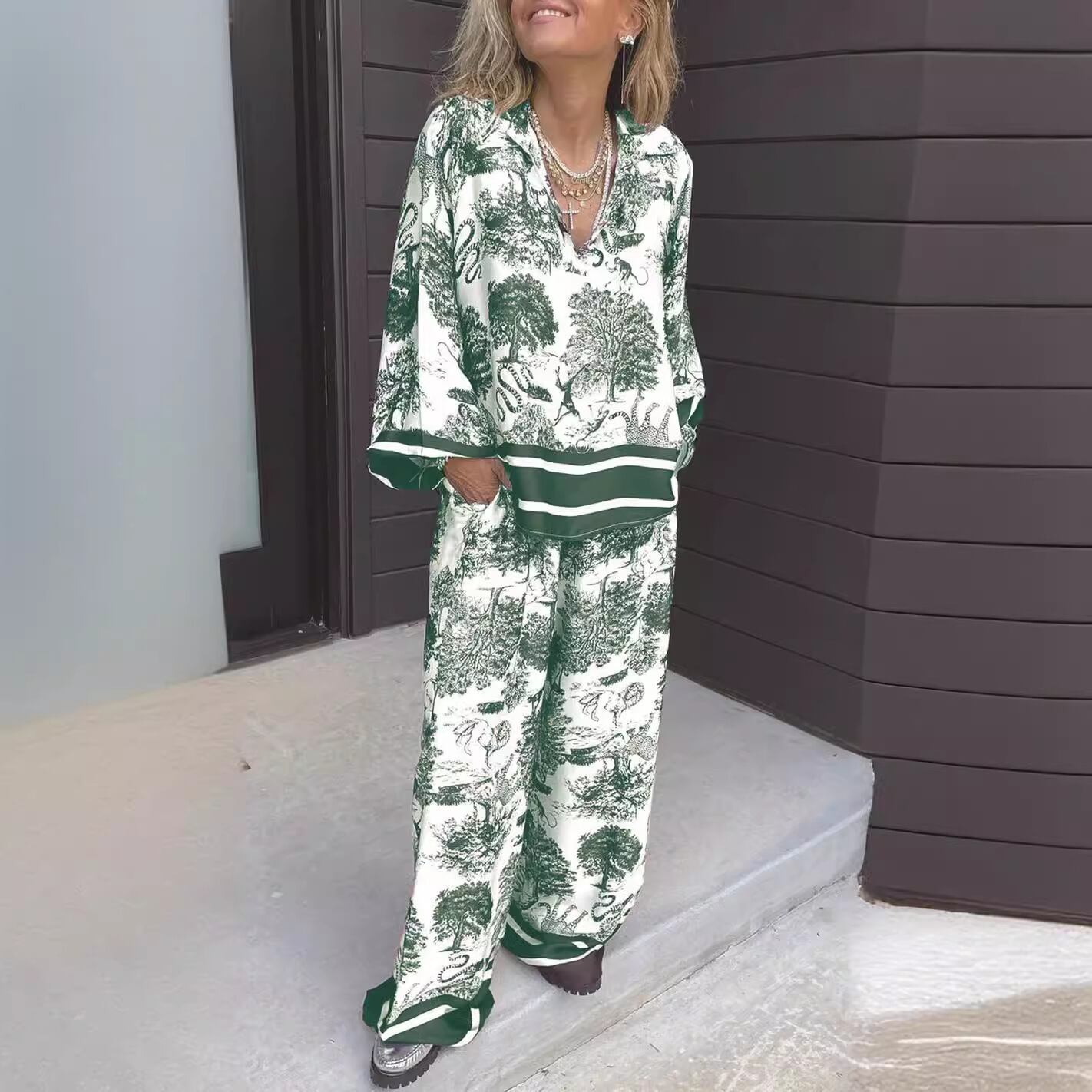 デザイン/Vネックプリント長袖ポケットカジュアルレディーススーツ