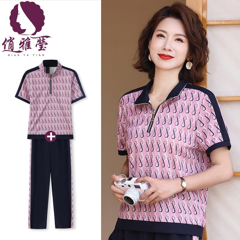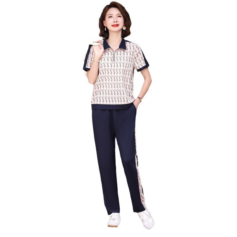 大人気の【大人気】ママの夏服 ツーピーススーツおしゃれな中年女性のトップス中高年夏スポーツスーツは、現代の中年女性に向けて特別にデザインされたスタイリッシュで快適なアイテムです。このスーツは、夏のお出かけからスポーツシーンまで、さまざまな場面であなたの魅力を引き立てることが期待できます!