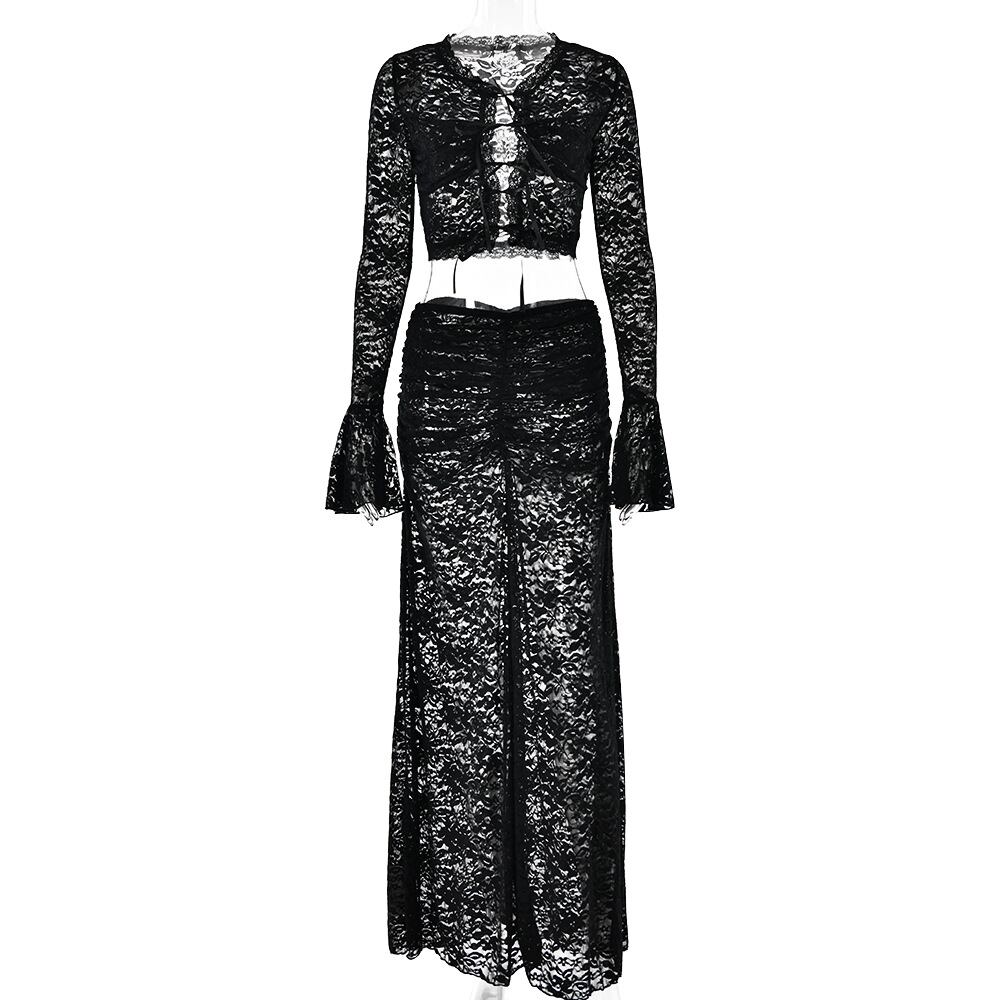 デザイン/透視レースツーピーススーツ&ハイウエストロングスカート