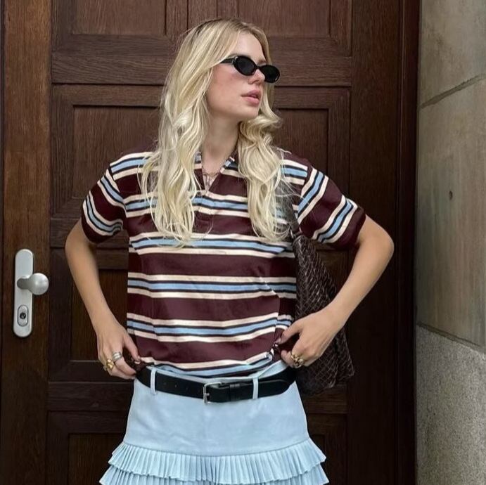 大人気の【大人気】夏の新しい女性の国境を越えた欧米風ファッションホットガールストライプ半袖Tシャツ+ローウエストプリーツスカートスーツは、これからの季節にぴったりの注目アイテムです。このスーツは、特に現代の女性に向けてデザインされており、カジュアルなお出かけから少し特別なシーンまで、多彩なシーンであなたの魅力を引き立てることが期待できます!