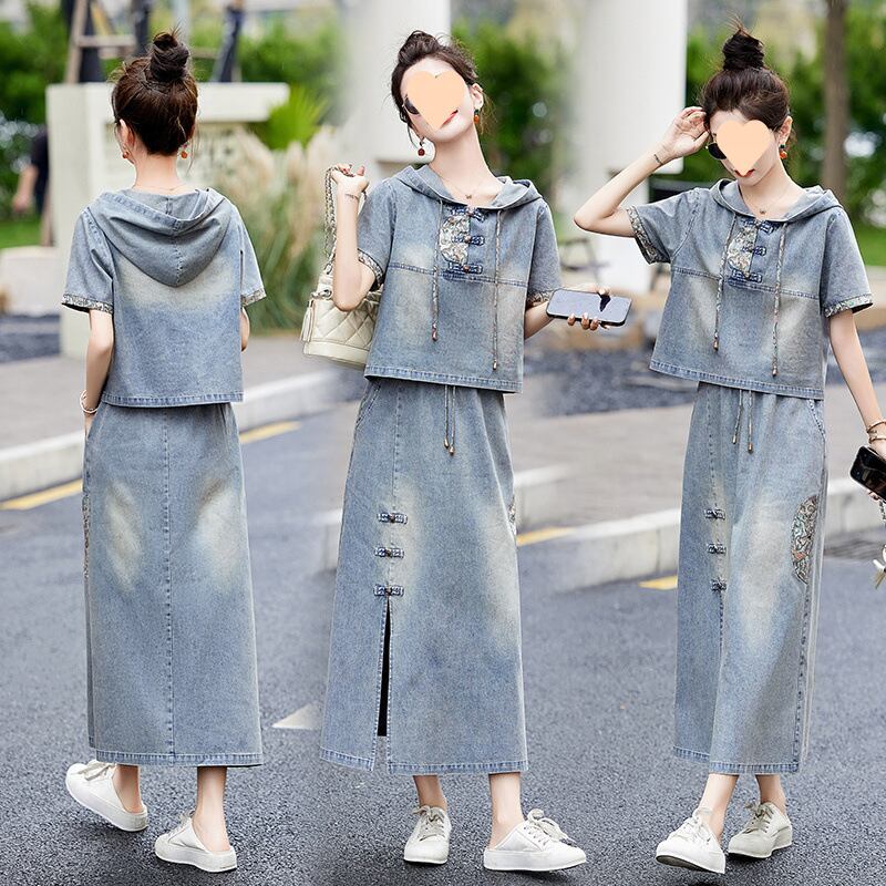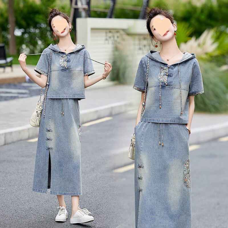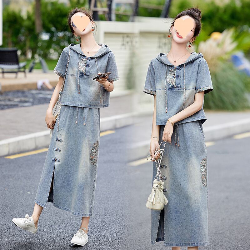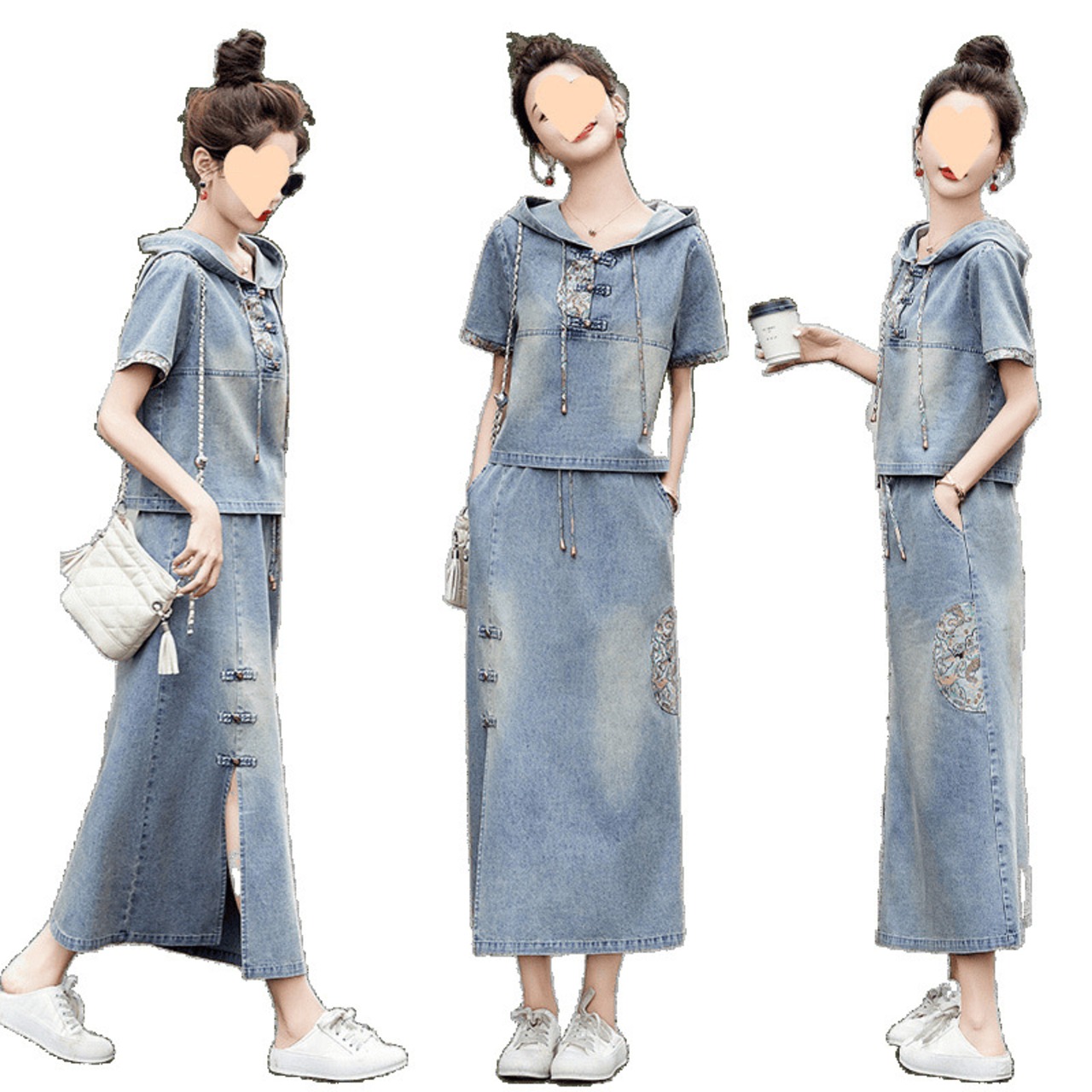 大人気の【大人気】中国風の刺繍入りフード付きデニムスーツスカートレディース 夏新作レトロスタイリッシュ年齢を縮めるスカートツーピーススーツは、夏のスタイルにぴったりの注目アイテムです。このスカートスーツは、特に個性的で華やかなスタイルを求める女性のためにデザインされており、カジュアルなお出かけから特別なイベントまで、幅広いシーンであなたの魅力を引き立てます!