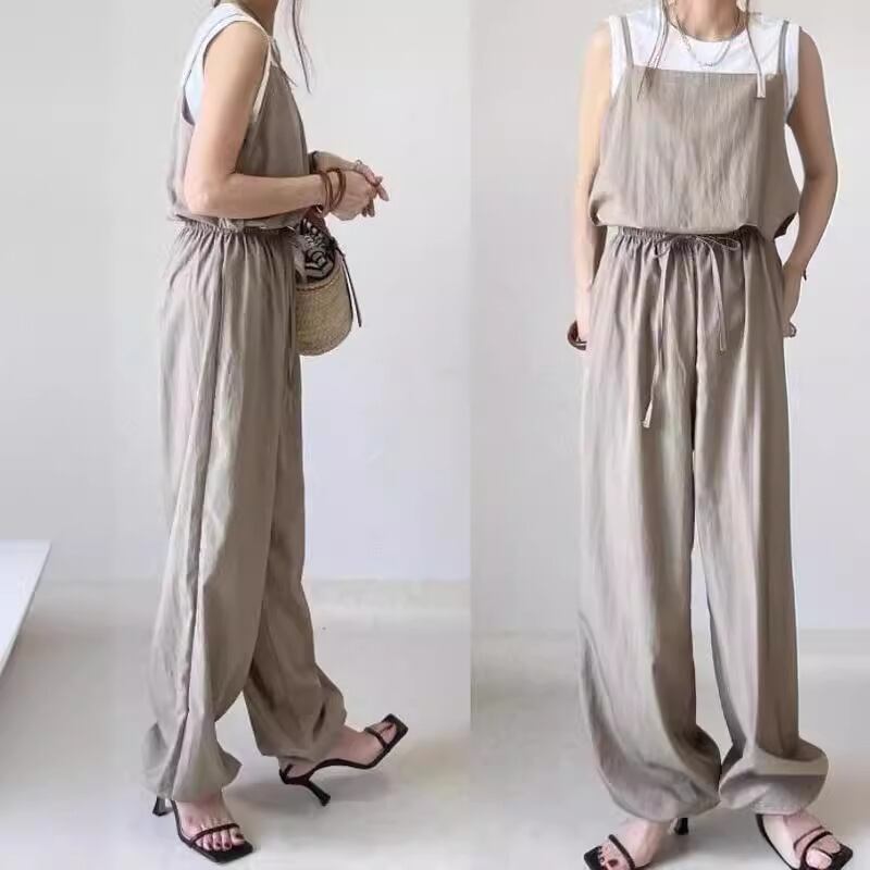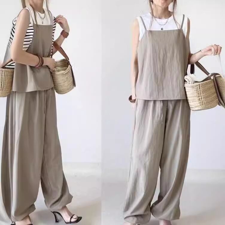 大人気の【大人気】スポットファッションカジュアルスーツレディース日本と韓国の春と夏のサスペンダートップ+レースアップワイドレッグパンツスーツツーピースセットは、春夏のスタイルにぴったりの注目アイテムです。このスーツは、特におしゃれさと快適さを求める女性のためにデザインされており、カジュアルなお出かけから特別なシーンまで、幅広いシーンであなたの魅力を引き立てます!