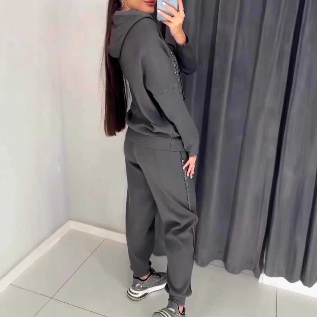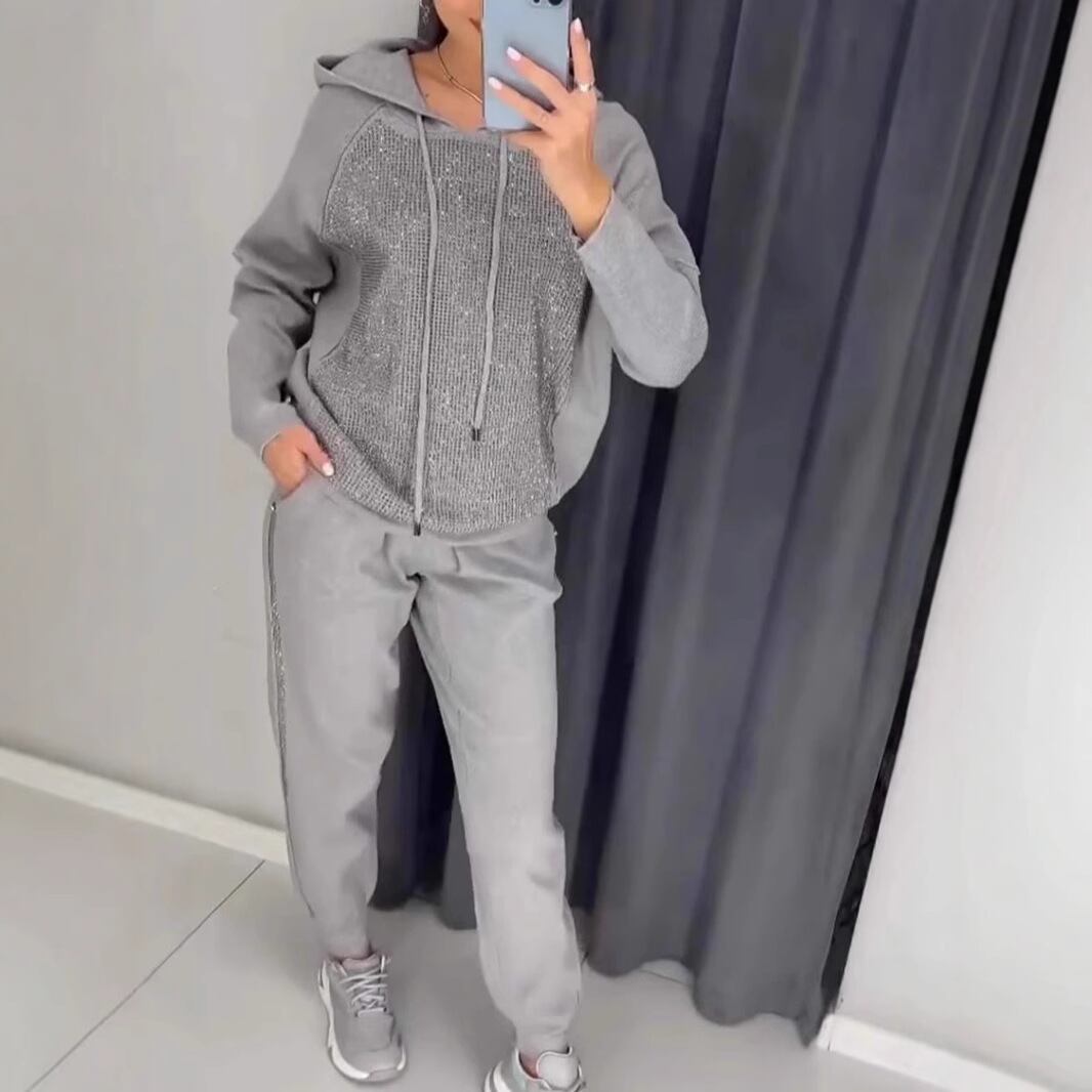 大人気の【大人気】春秋の婦人服、ファッショナブルなカジュアルフード付きホットダイヤモンドポケット付きセータースポーツスーツは、この季節にぴったりの注目アイテムです。このスーツは、特におしゃれで快適さを求める女性のためにデザインされており、カジュアルな日常のお出かけからリラックスタイムまで、幅広いシーンであなたの魅力を引き立てます!