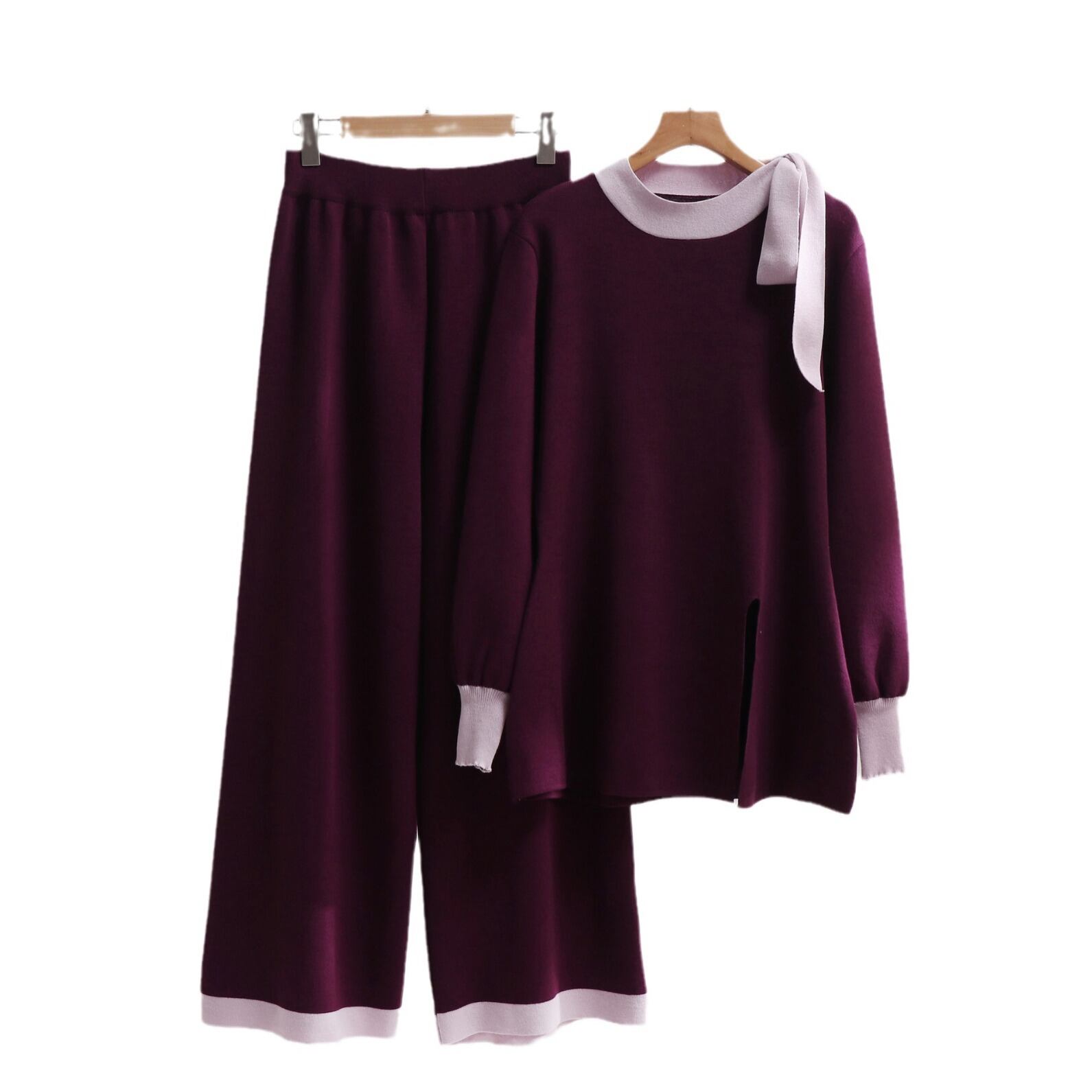 デザイン/ハイエンドルーズニットセーターとワイドレッグパンツ